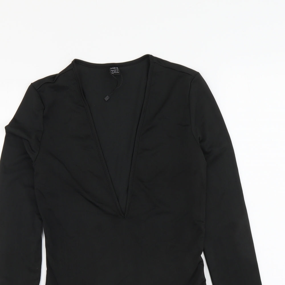 SheIn Womens Black Polyester Bodysuit One-Piece Size S Snap