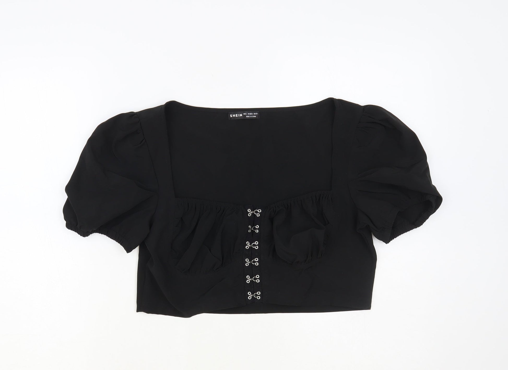 SheIn Womens Black Polyester Cropped Blouse Size L Square Neck