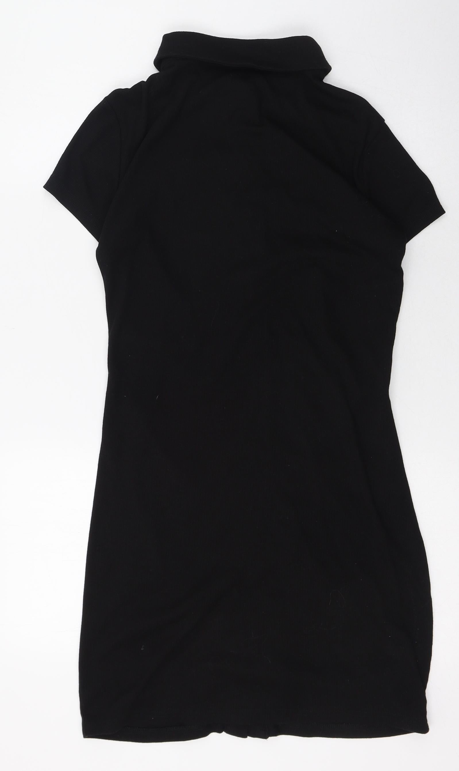SheIn Womens Black Polyester Shirt Dress Size 8 Collared - Ribbed