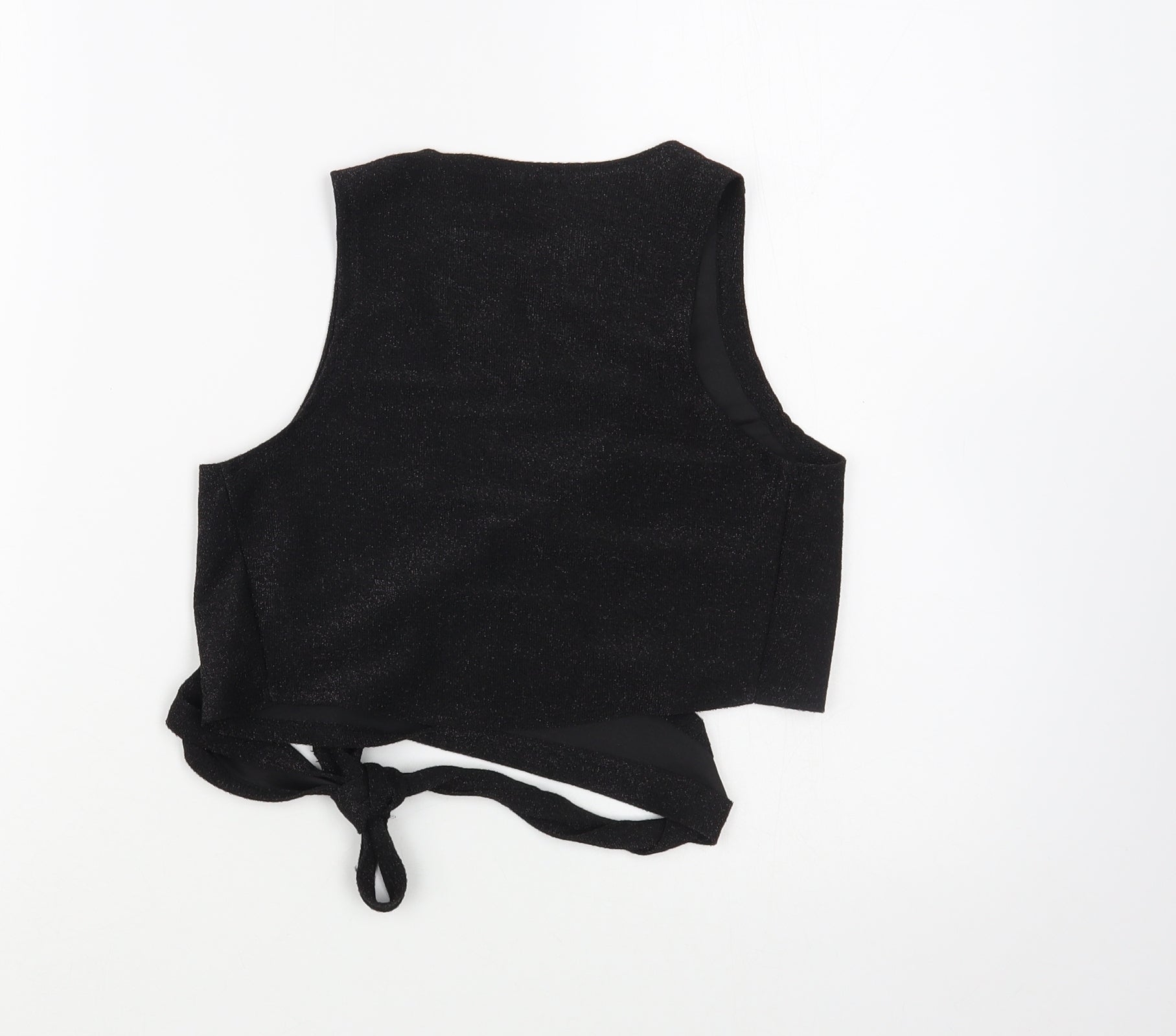 SheIn Womens Black Polyester Wrap Blouse Size S V-Neck