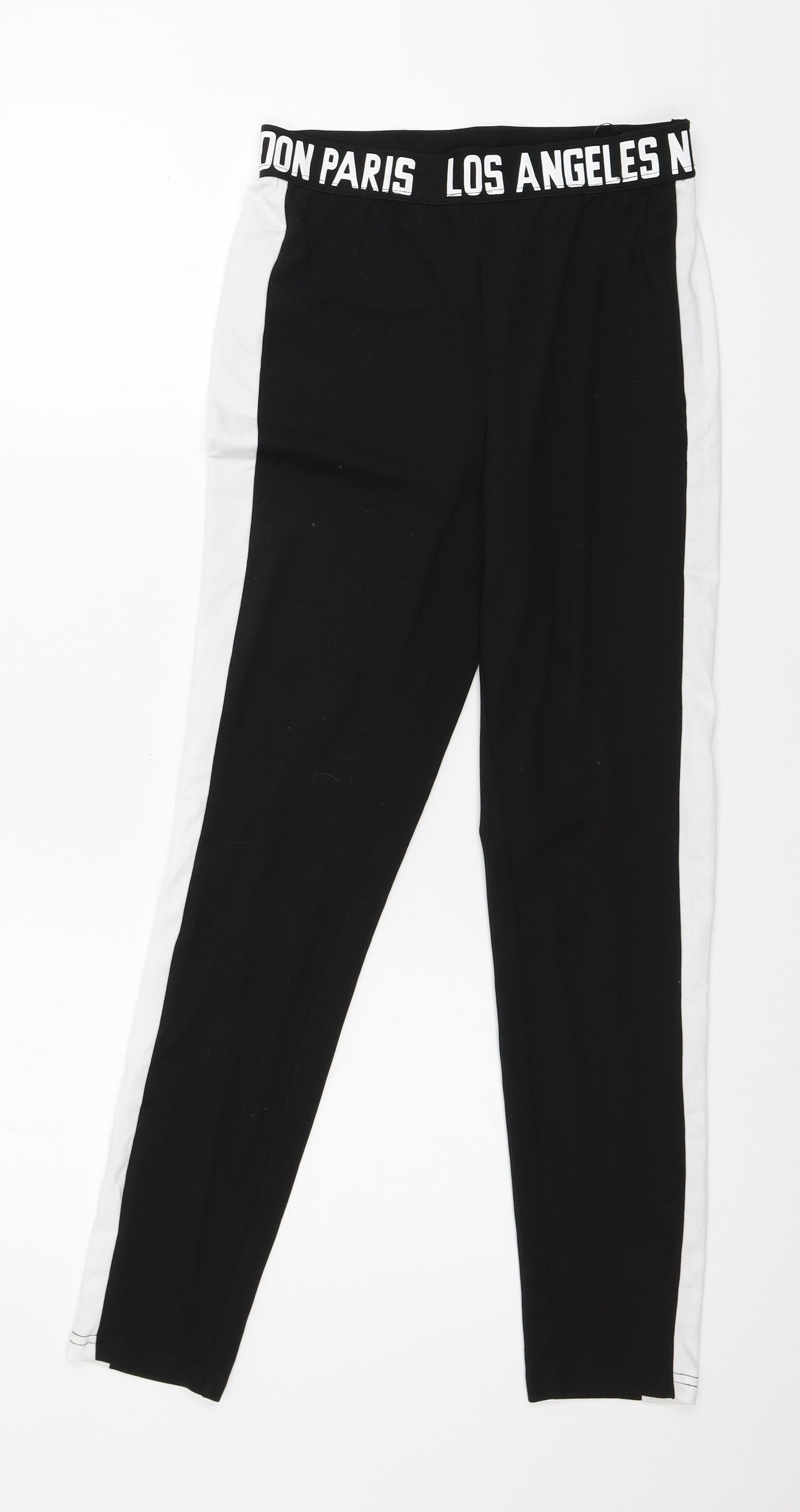SheIn Womens Black Striped Jersey Capri Leggings Size S L26 in
