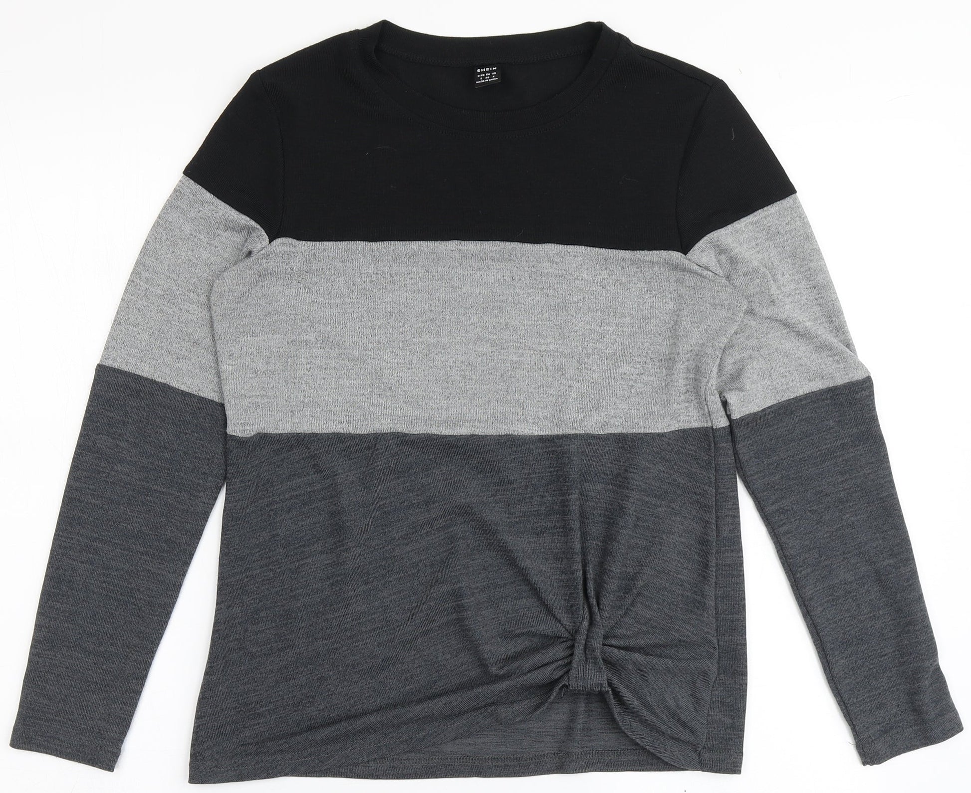 SheIn Womens Black Striped Polyester Basic T-Shirt Size S Round Neck