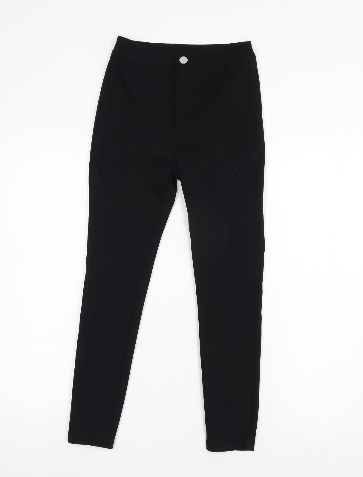 SheIn Womens Black Viscose Capri Trousers Size XS L23 in Regular Button