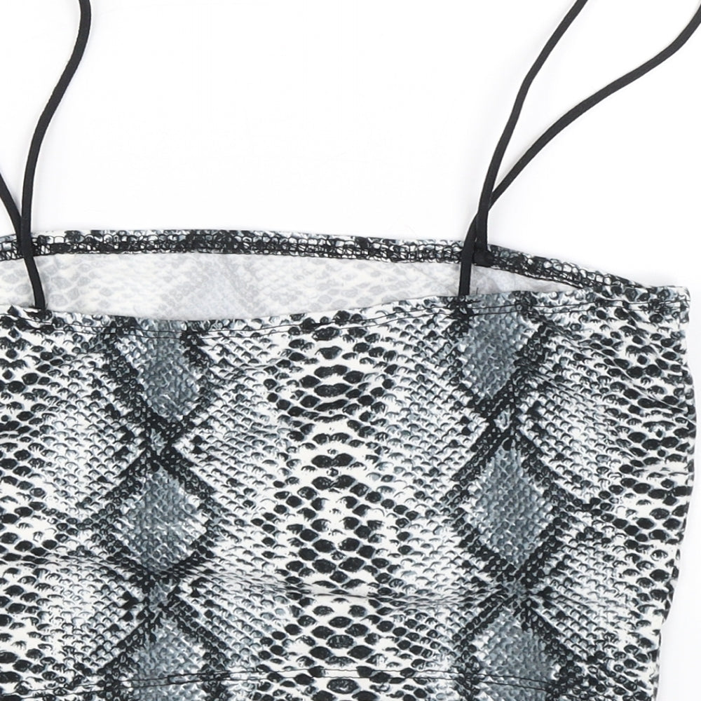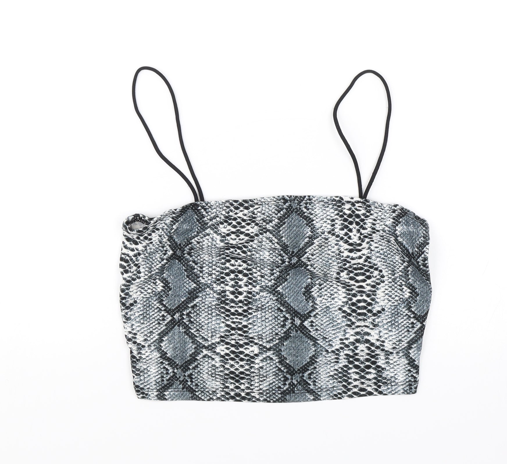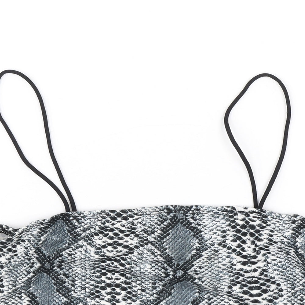 SheIn Womens Blue Animal Print Cropped Blouse Size S