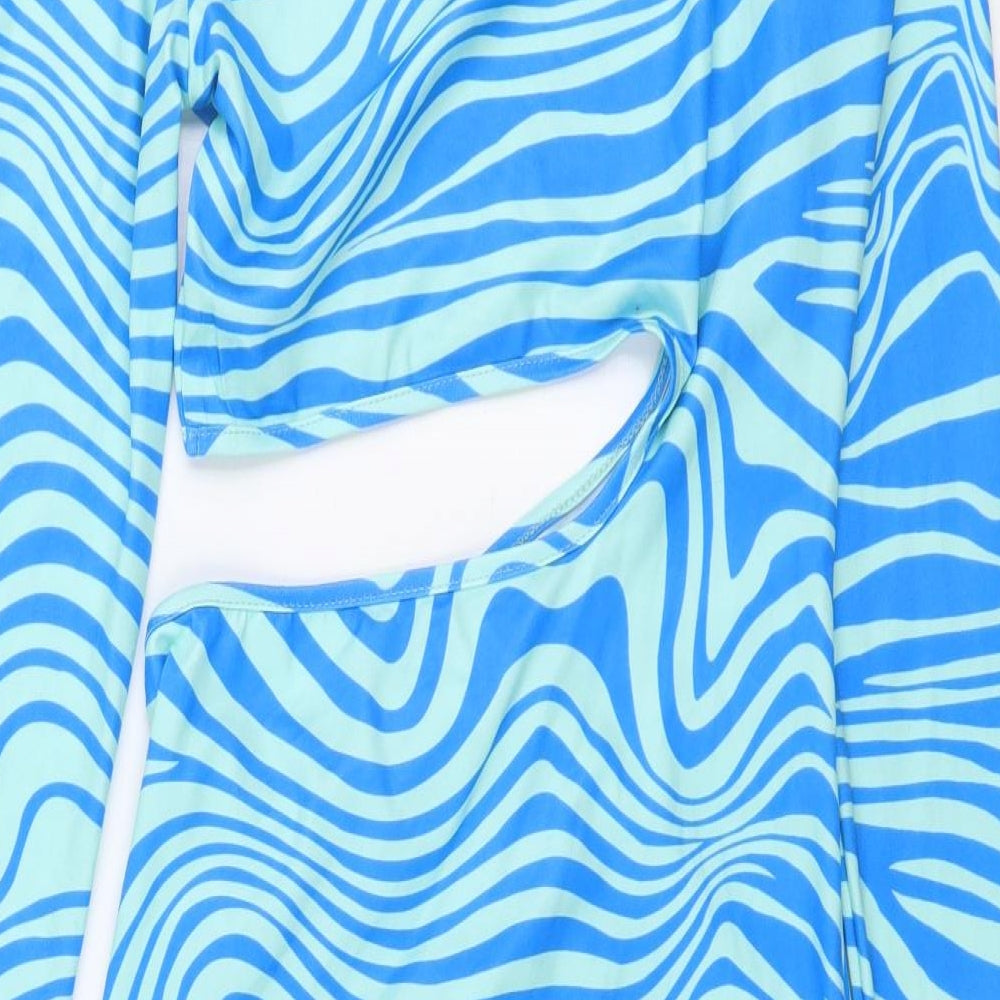 SheIn Womens Blue Animal Print Polyester Bodycon Size XS Boat Neck Pullover