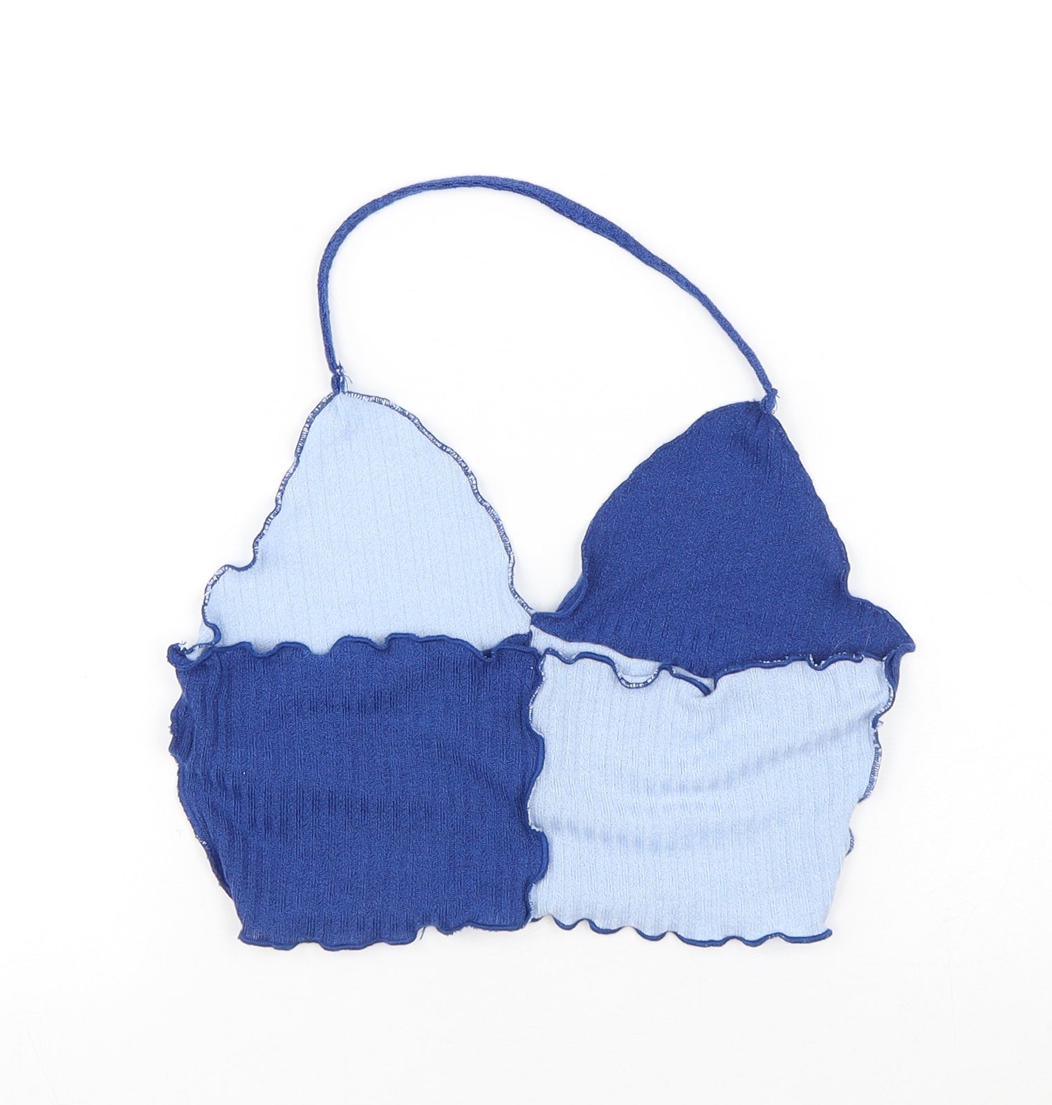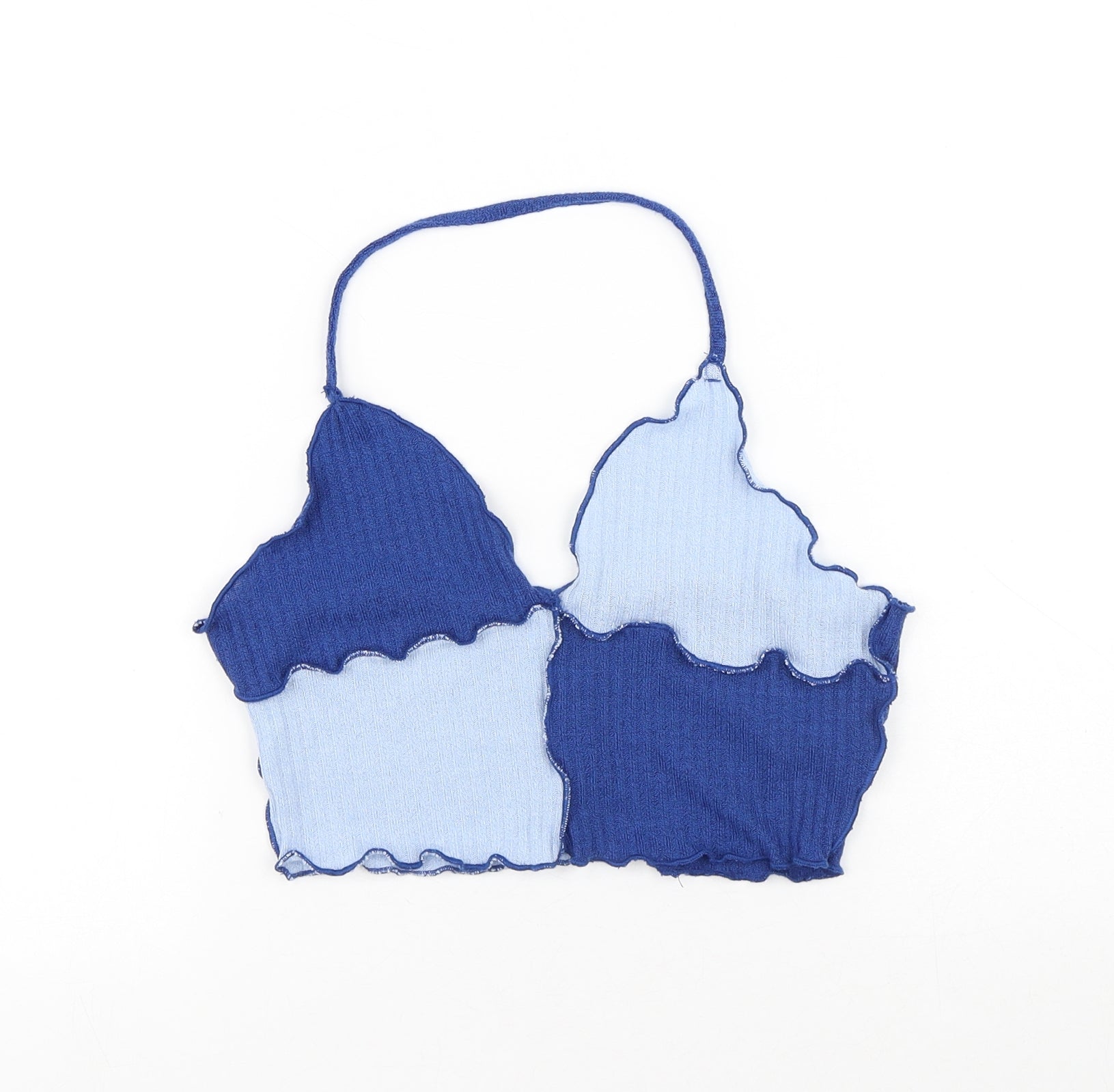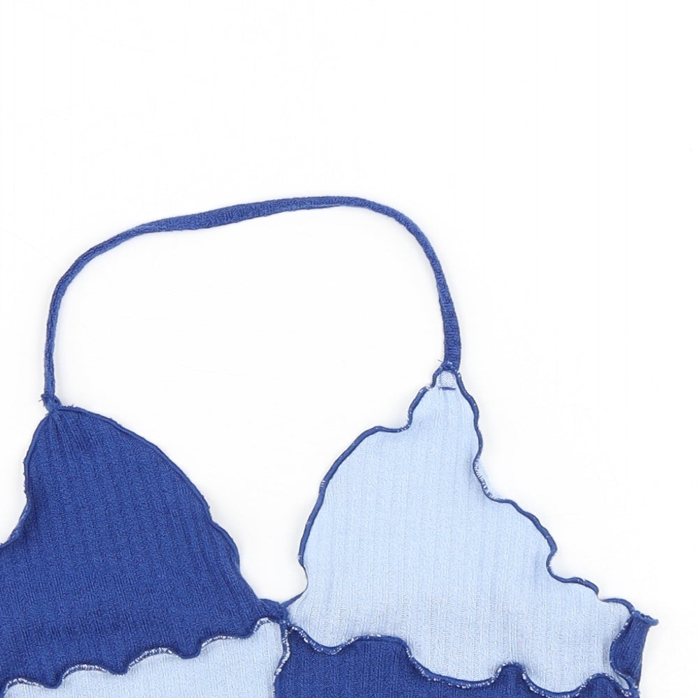 SheIn Womens Blue Colourblock Polyester Cropped Tank Size M V-Neck