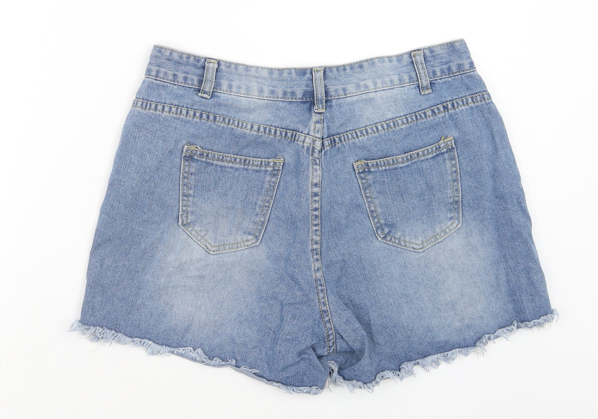 SheIn Womens Blue Cotton Cut-Off Shorts Size 30 in Regular Zip - Distressed