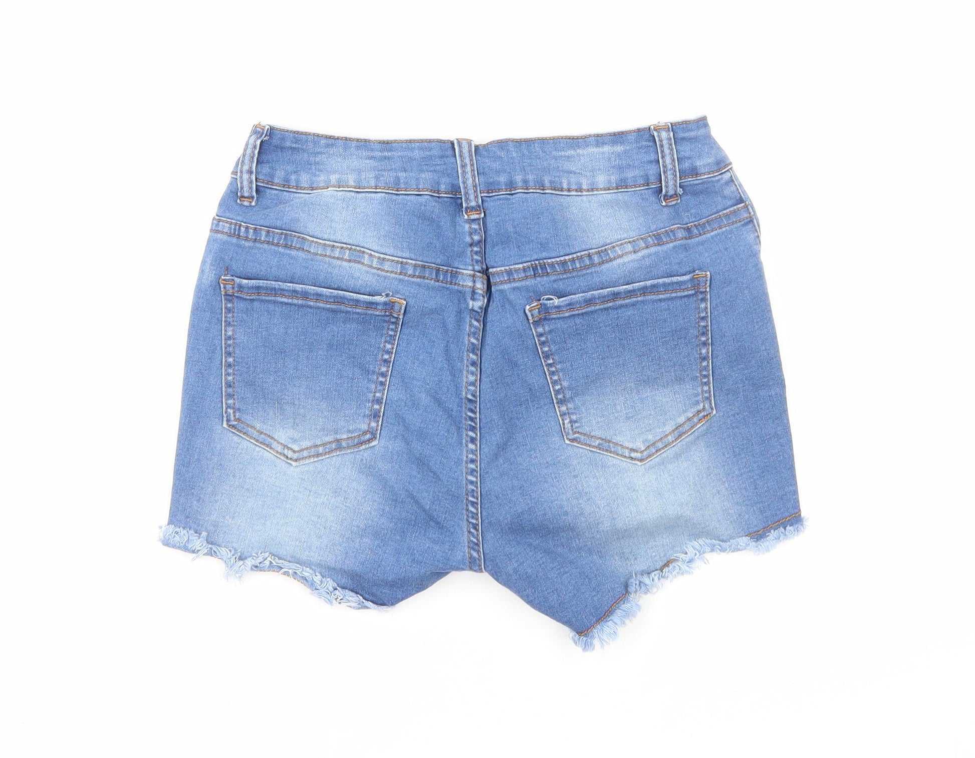 SheIn Womens Blue Cotton Hot Pants Shorts Size M L4 in Regular Zip - Distressed