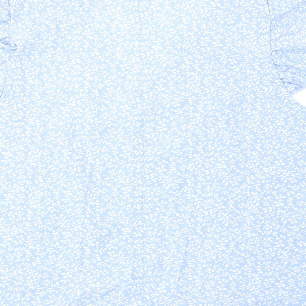 SheIn Womens Blue Floral Polyester Basic Blouse Size M V-Neck