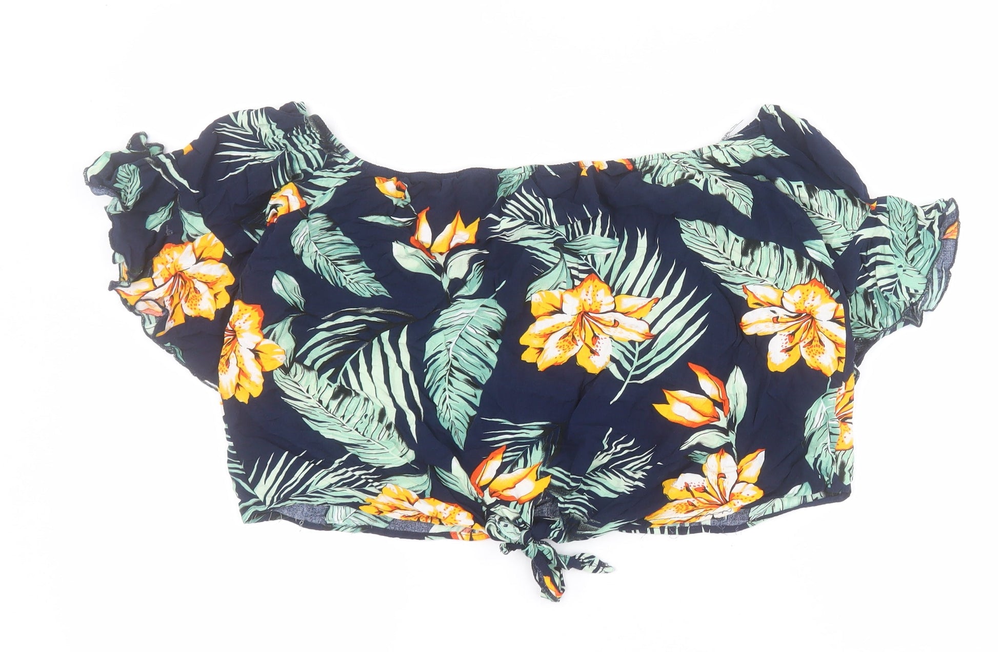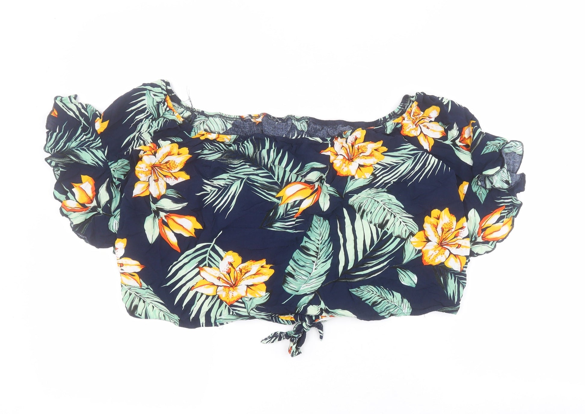 SheIn Womens Blue Floral Viscose Cropped Blouse Size XL Square Neck