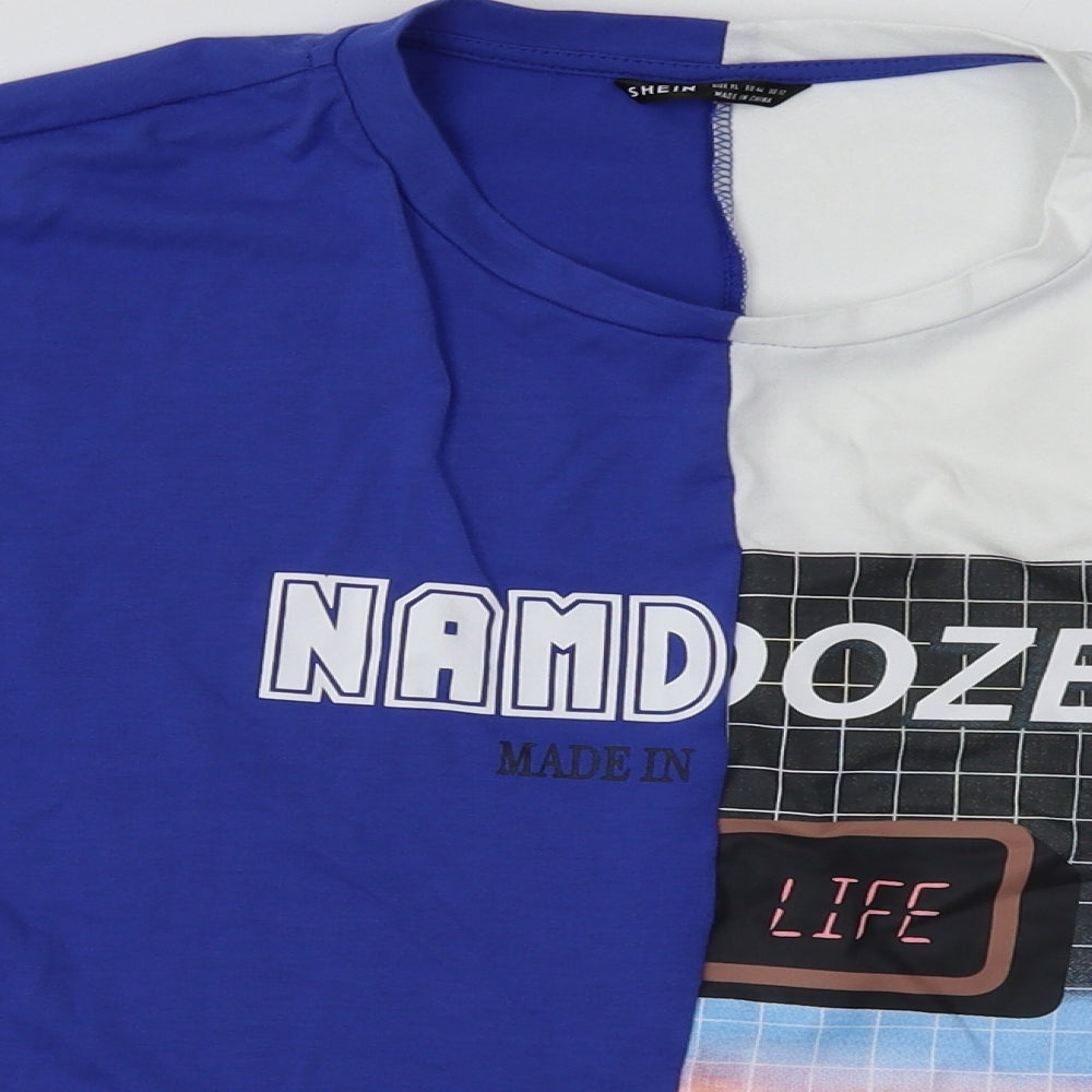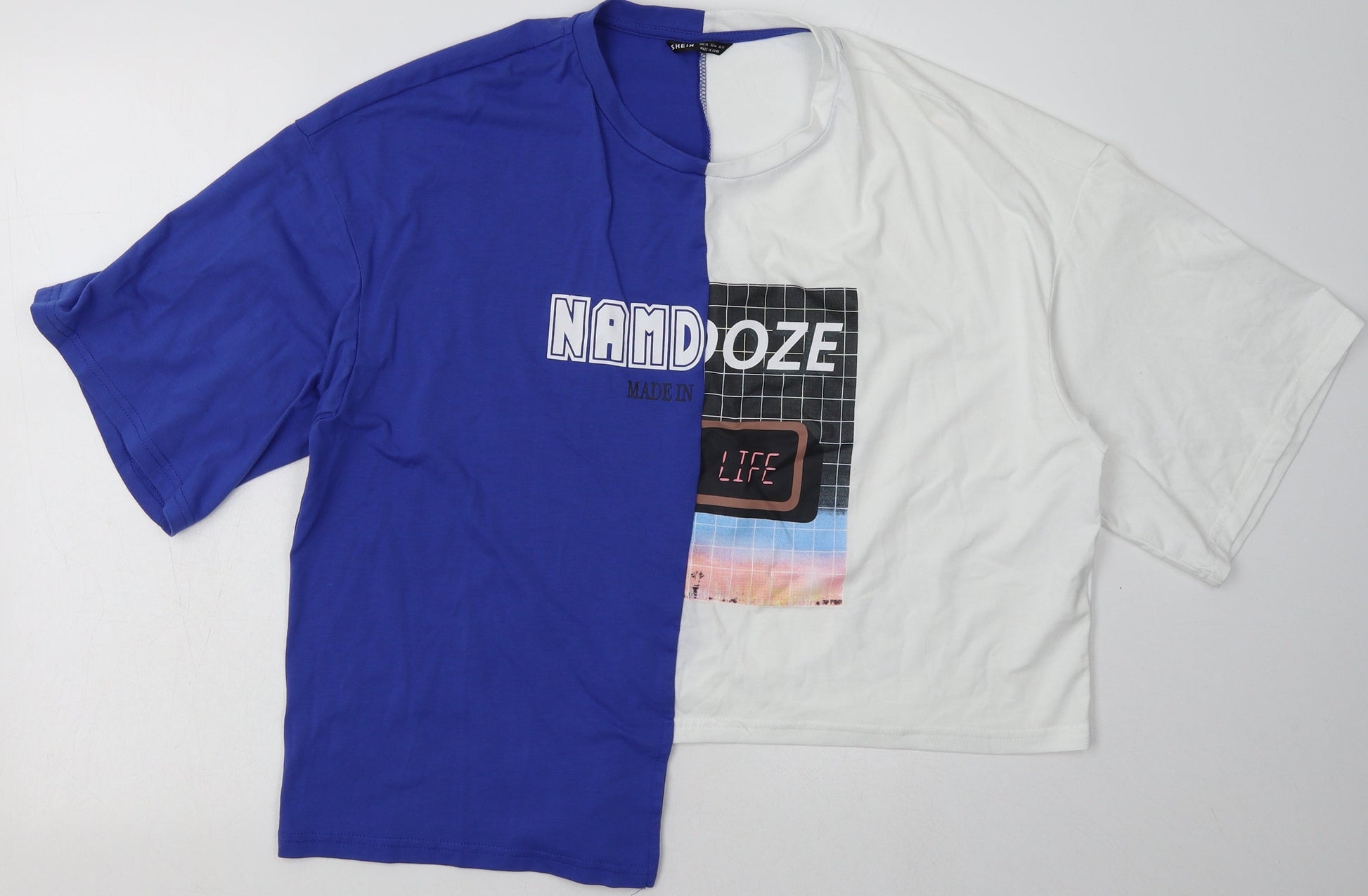SheIn Womens Blue Geometric Cotton Basic T-Shirt Size XL Crew Neck - life