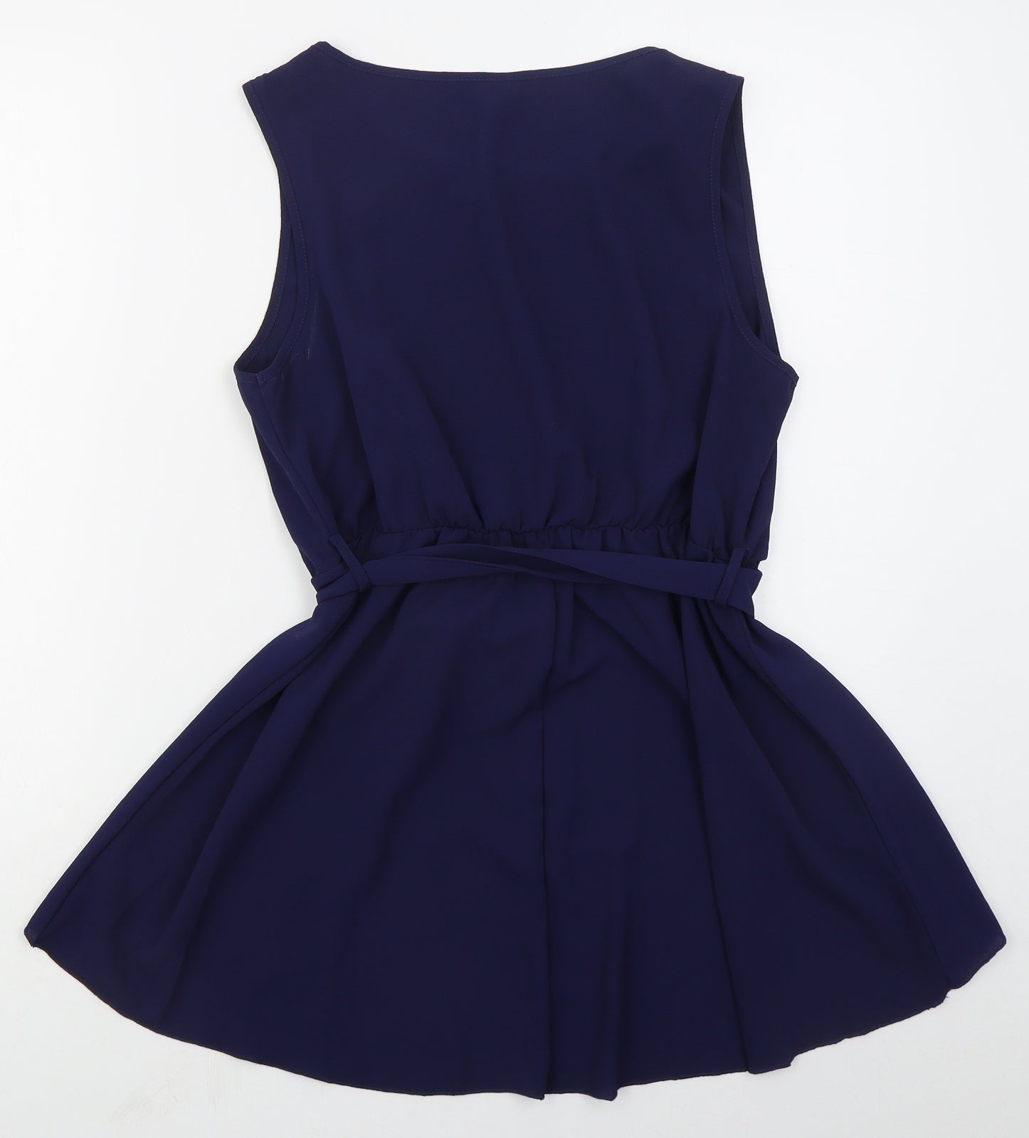 SheIn Womens Blue Polyester Basic Blouse Size L Boat Neck