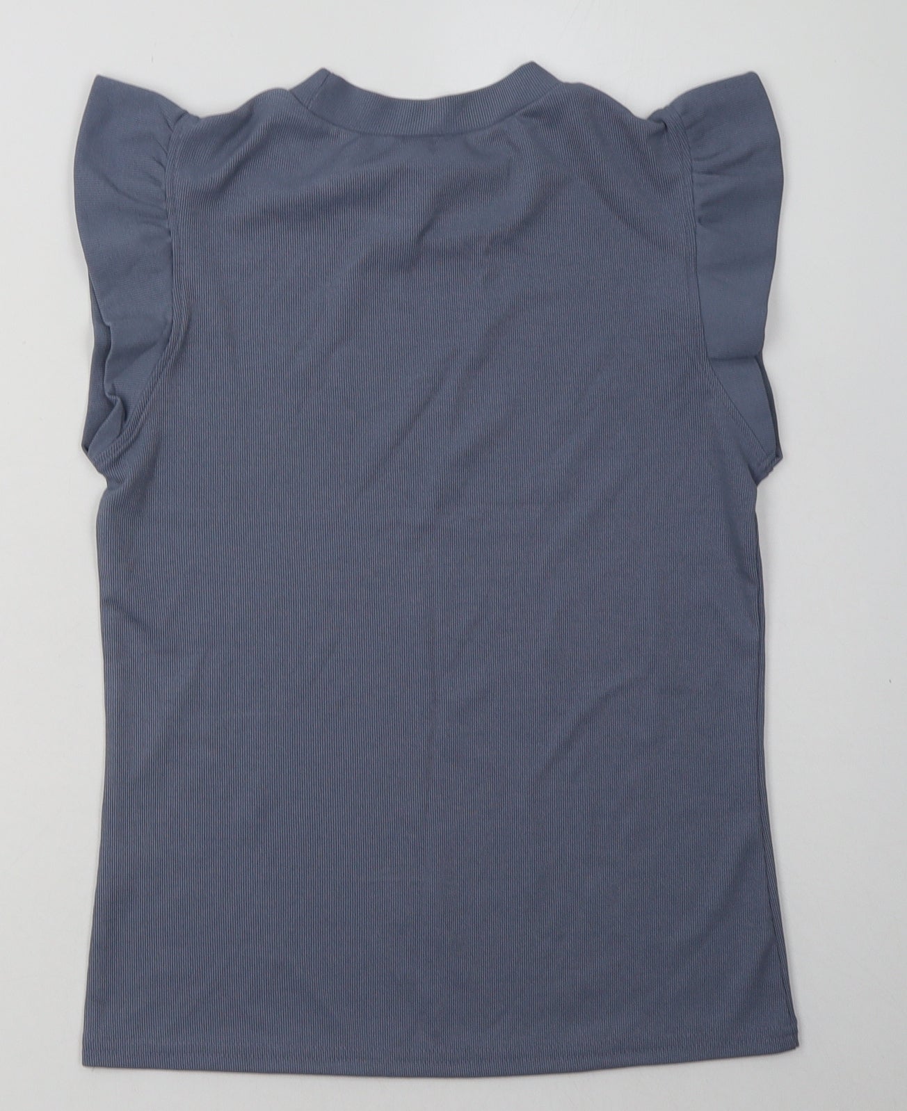 SheIn Womens Blue Polyester Basic T-Shirt Size S Crew Neck - frill arms