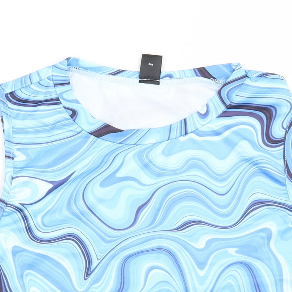 SheIn Womens Blue Polyester Cropped Tank Size L Round Neck - Tie Dye