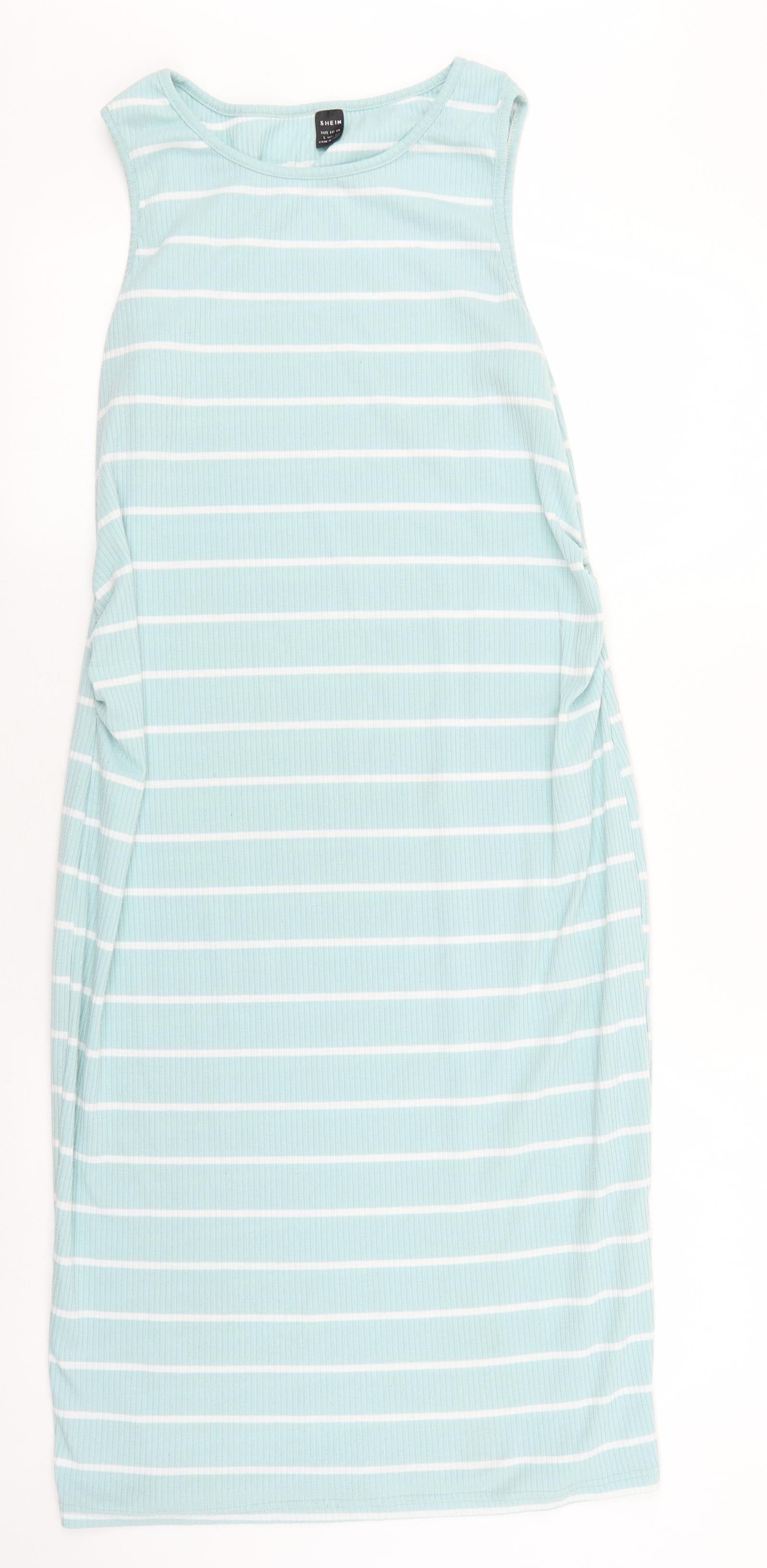 SheIn Womens Blue Striped Cotton Tank Dress Size L Round Neck Pullover