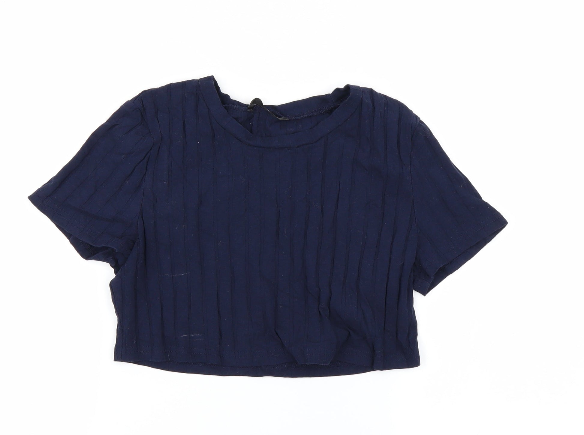 SheIn Womens Blue Striped Cropped T-Shirt Size S