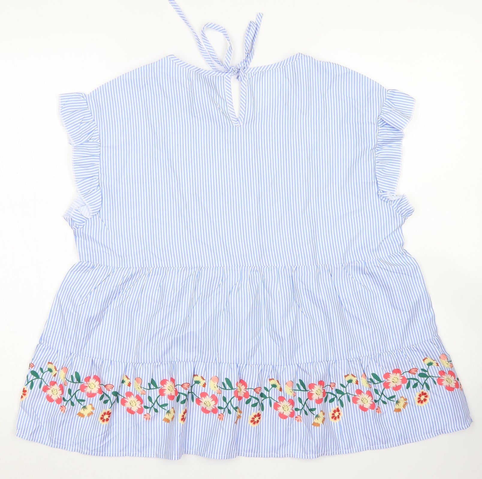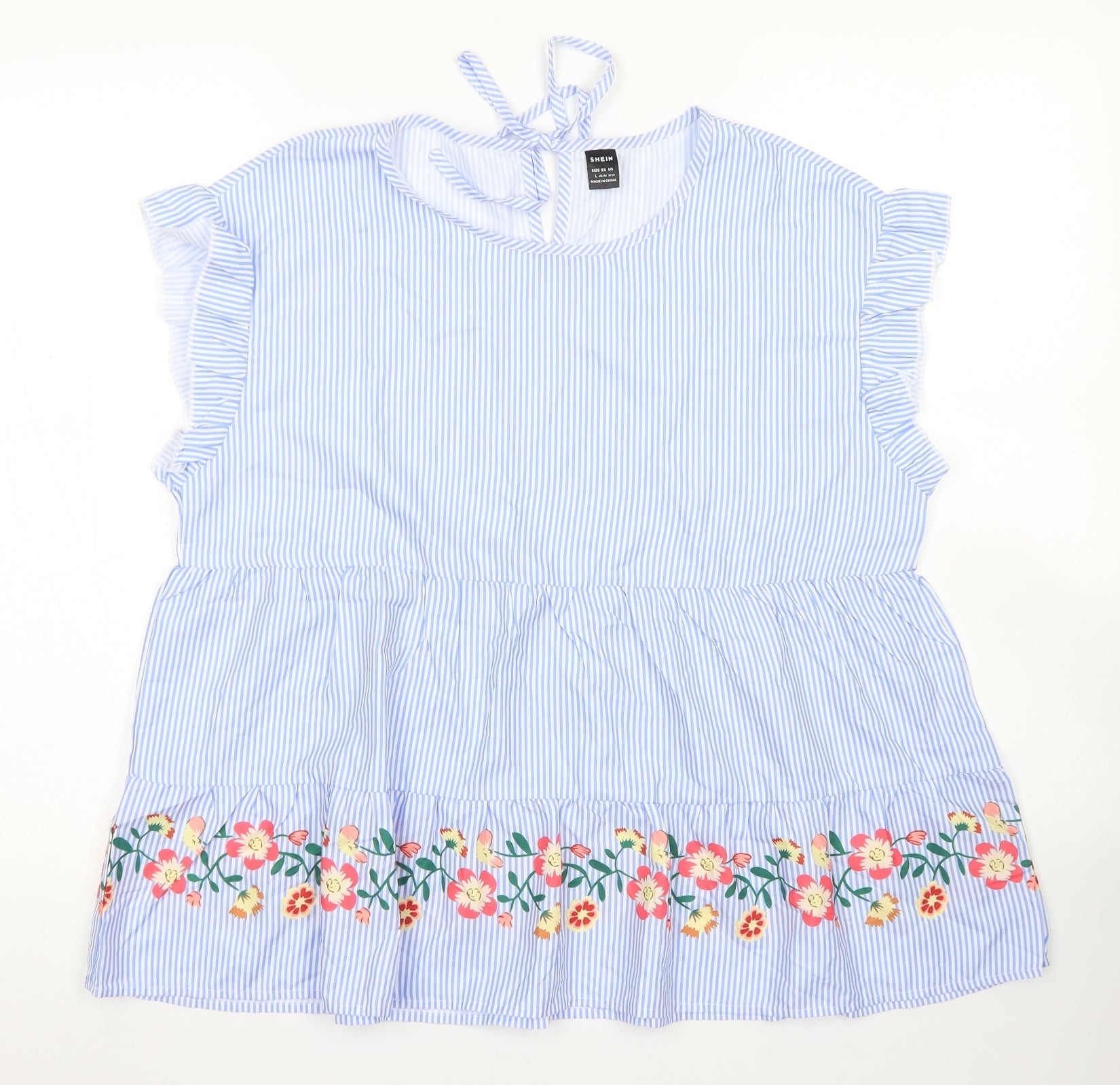 SheIn Womens Blue Striped Polyester Basic Blouse Size L Crew Neck