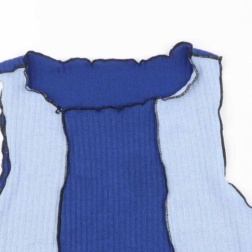SheIn Womens Blue Striped Polyester Cropped Tank Size M Round Neck