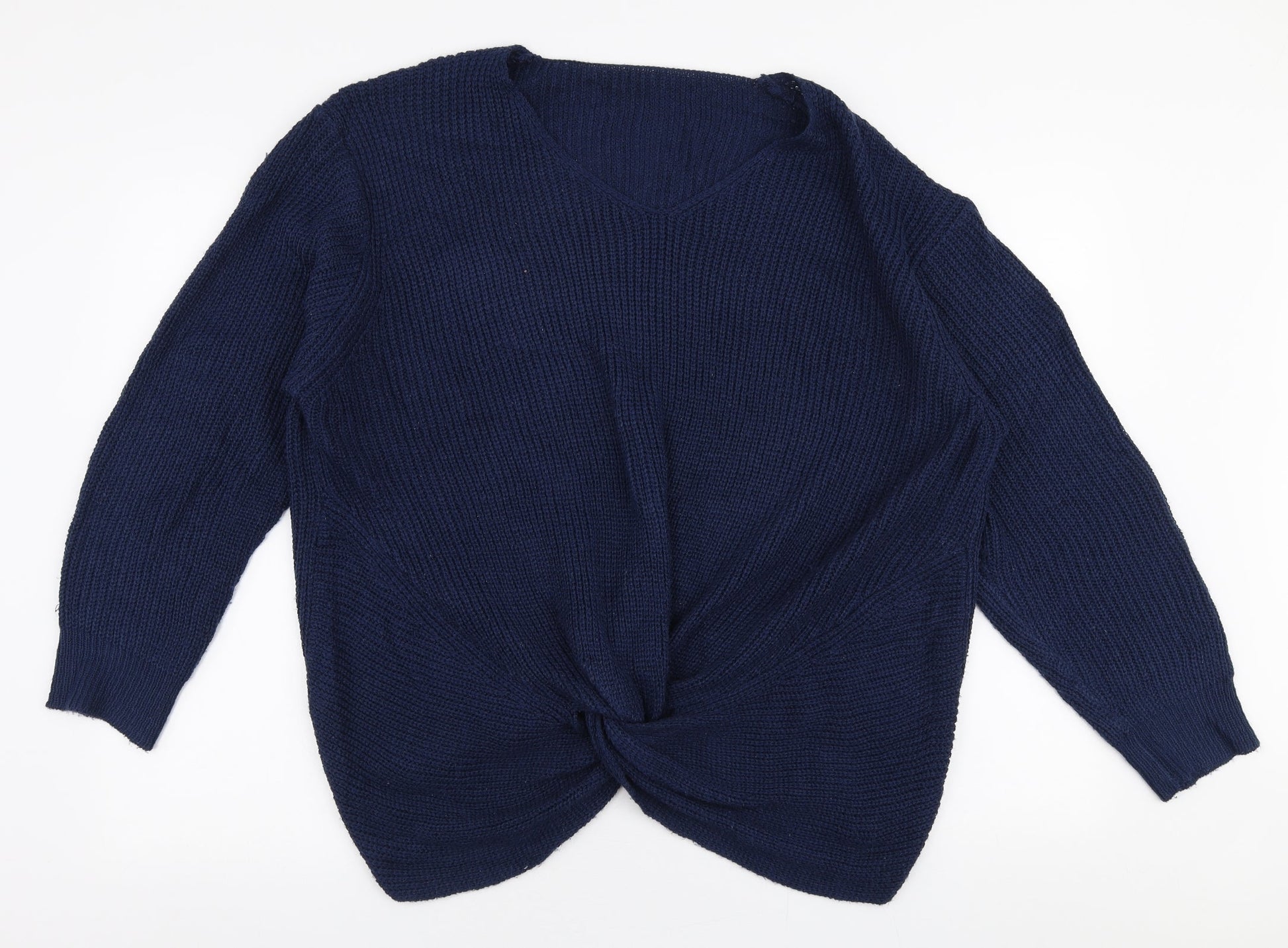 SheIn Womens Blue V-Neck Acrylic Pullover Jumper Size XL