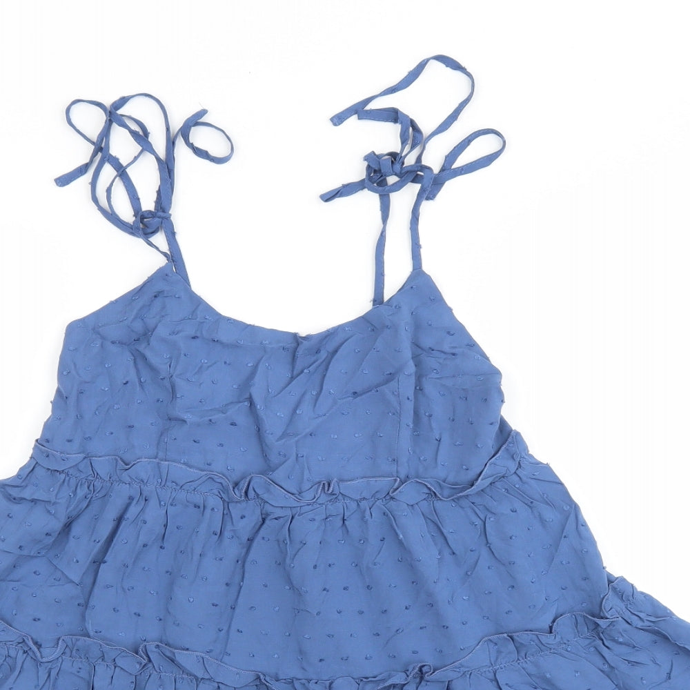 SheIn Womens Blue Viscose Trapeze & Swing Size S Round Neck Tie - Tiered