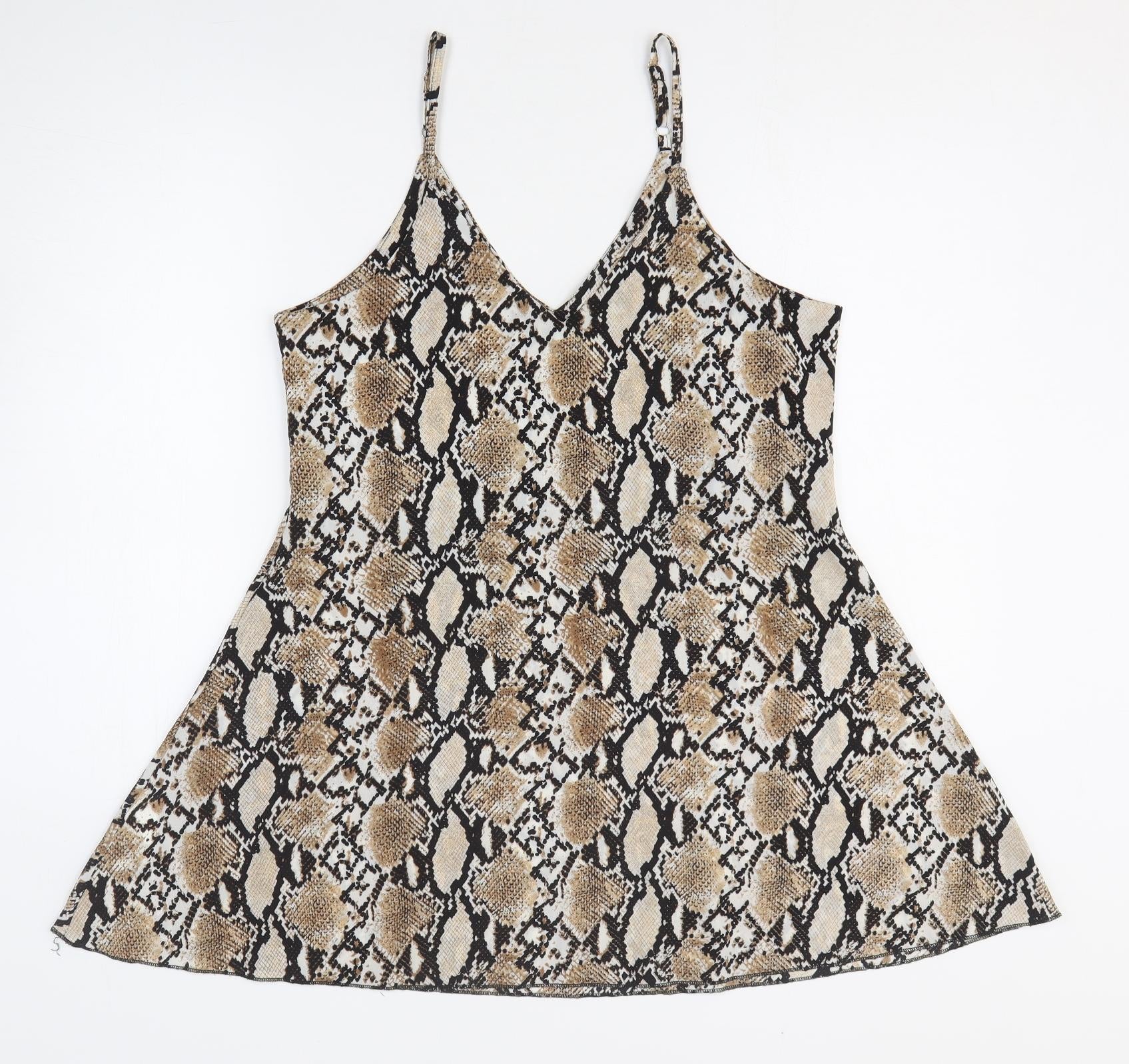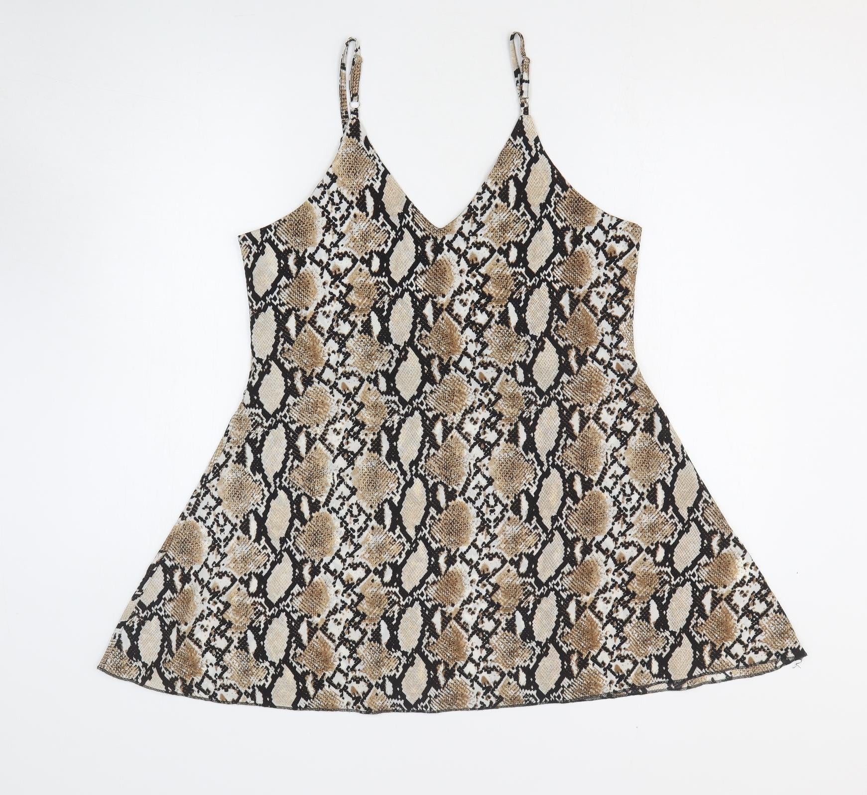 SheIn Womens Brown Animal Print Polyester Mini Size S V-Neck Pullover - Snake Skin Pattern