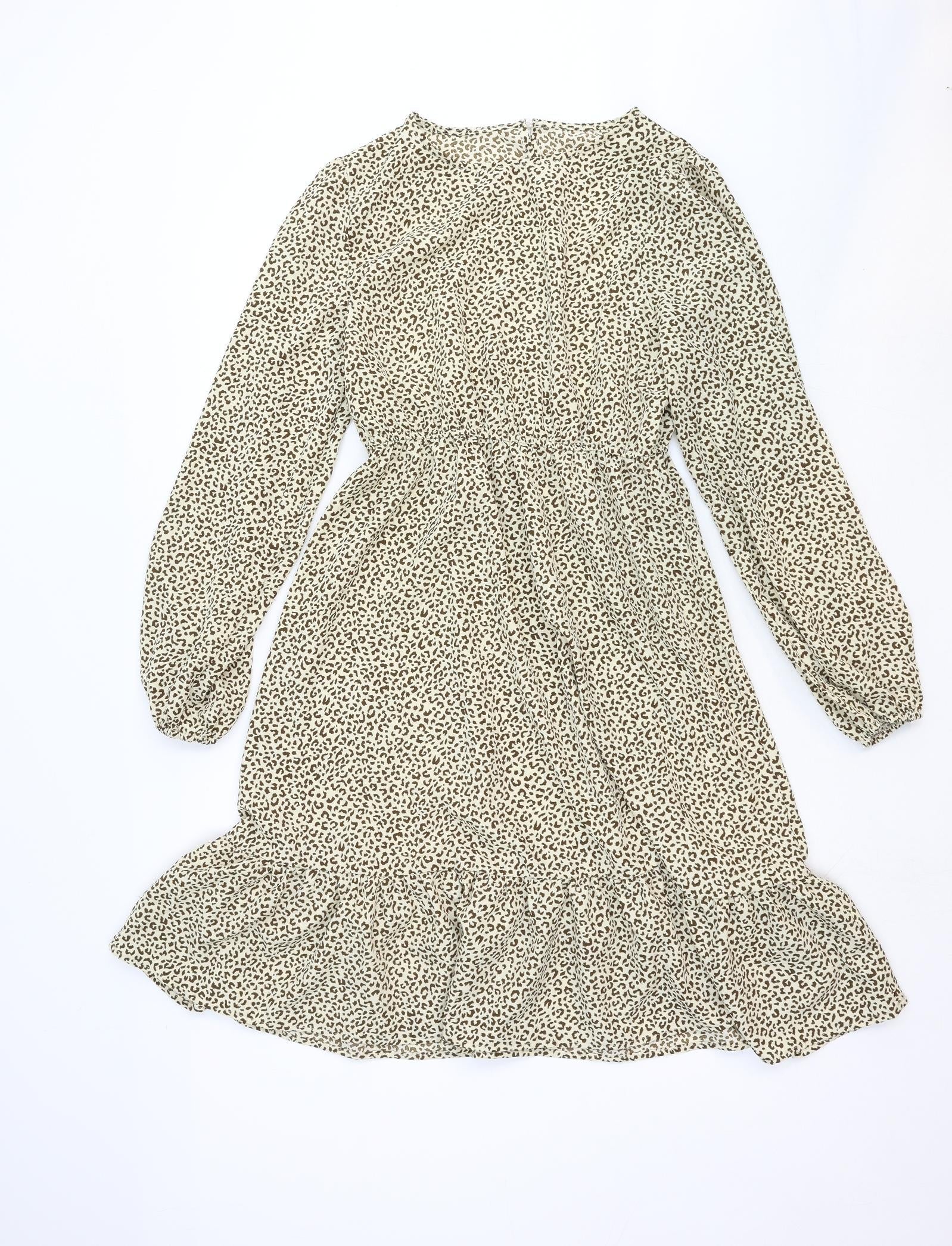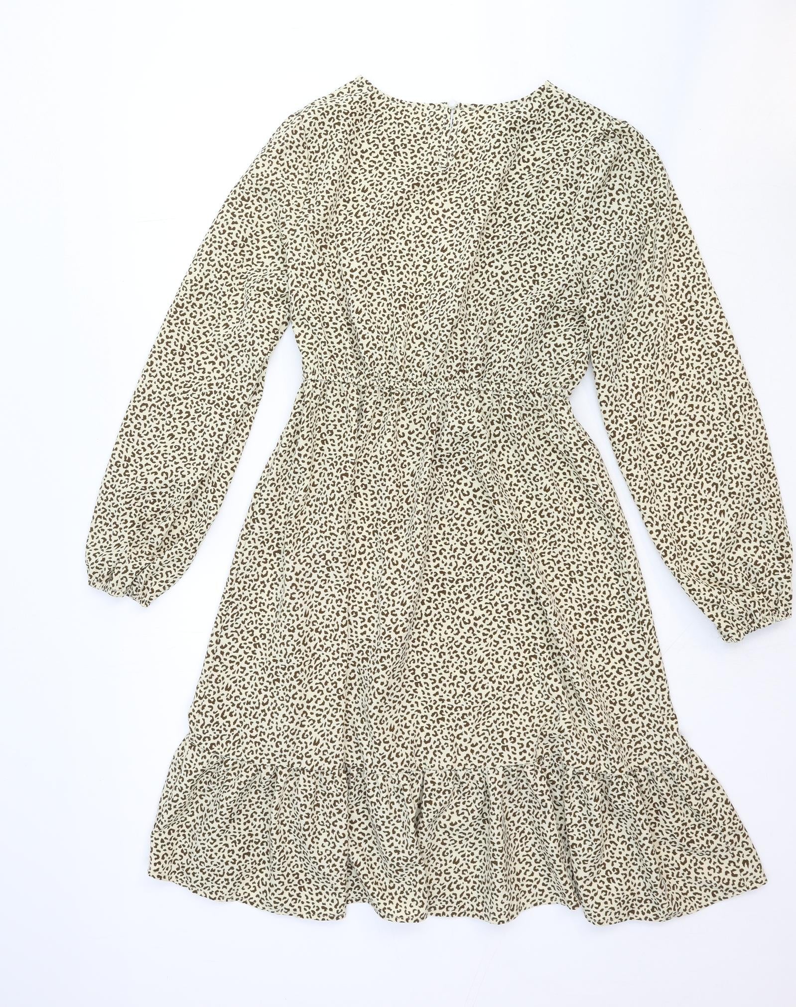 SheIn Womens Brown Animal Print Viscose A-Line Size S Round Neck Button - Leopard Pattern