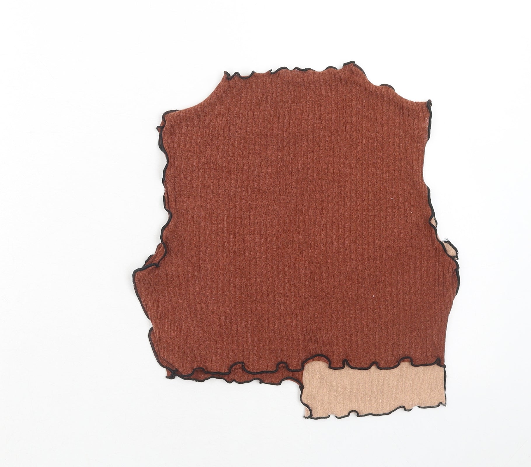SheIn Womens Brown Colourblock Polyester Basic Tank Size M Square Neck - Asymmetric