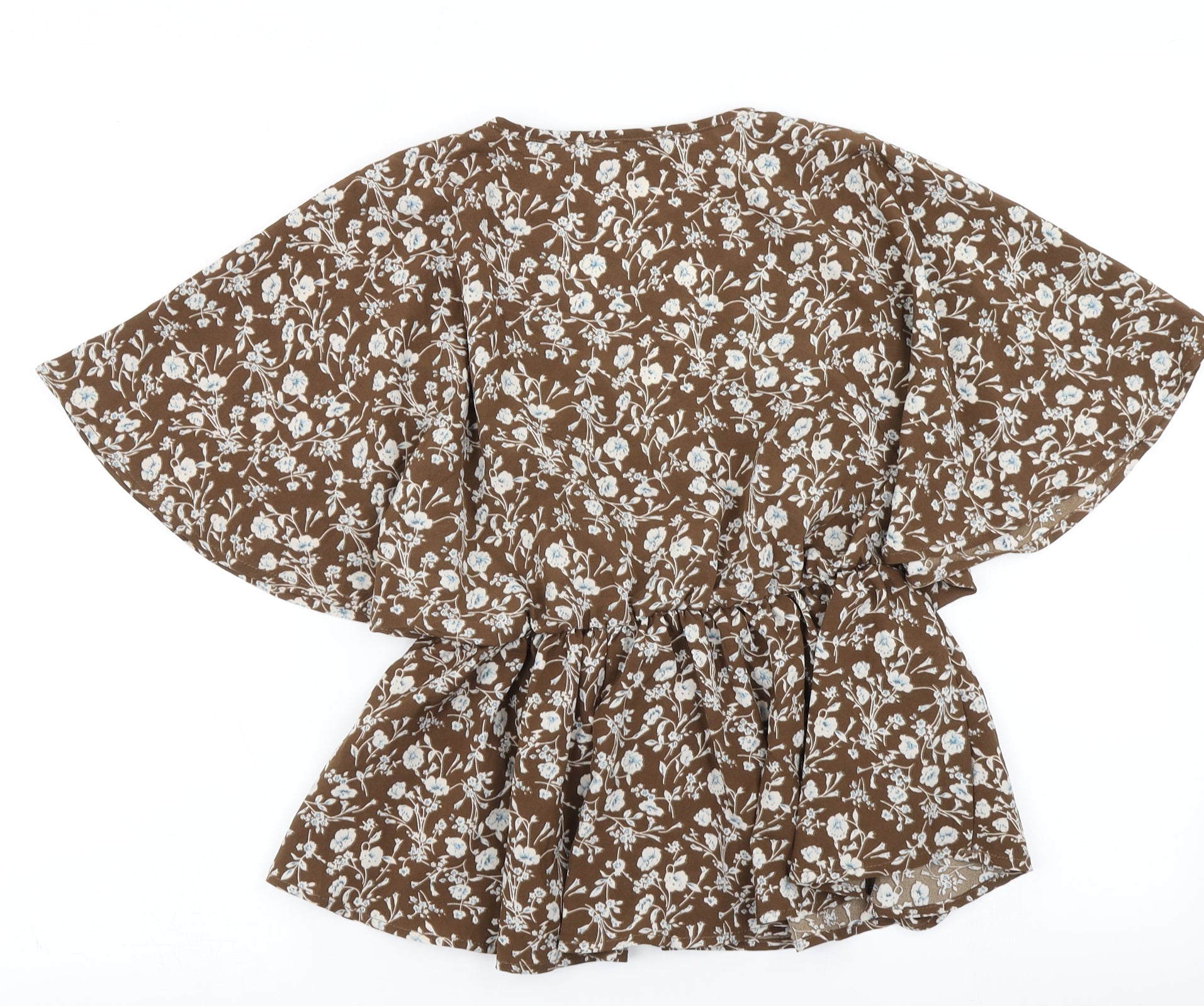 SheIn Womens Brown Floral Basic Blouse Size XS