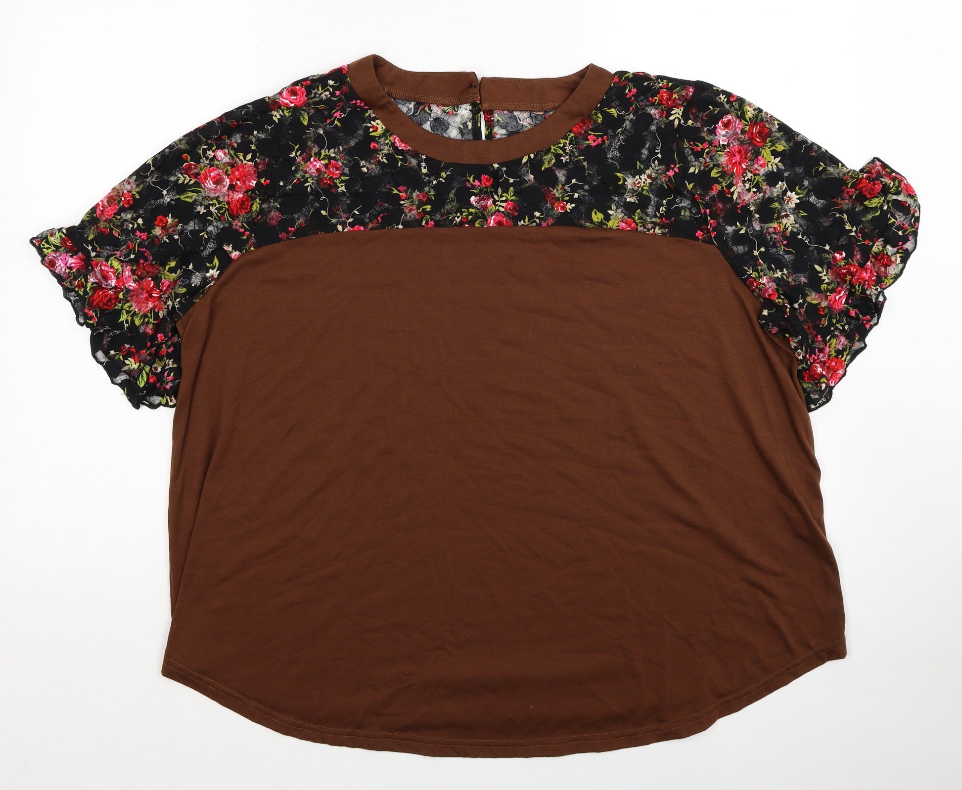 SheIn Womens Brown Floral Polyester Basic T-Shirt Size 2XL Round Neck