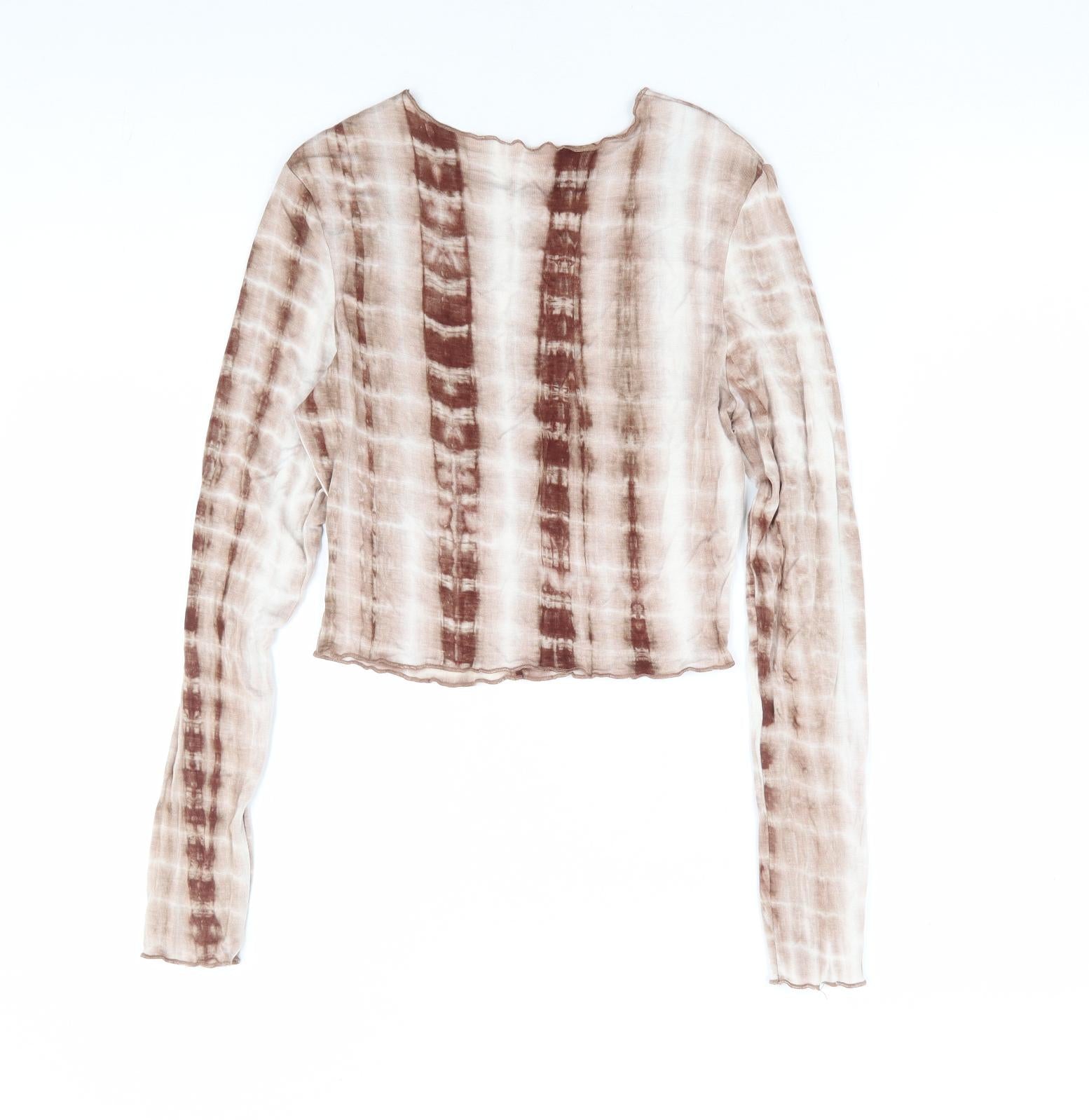 SheIn Womens Brown Geometric Elastane Cropped T-Shirt Size XS Round Neck - Tie Dye
