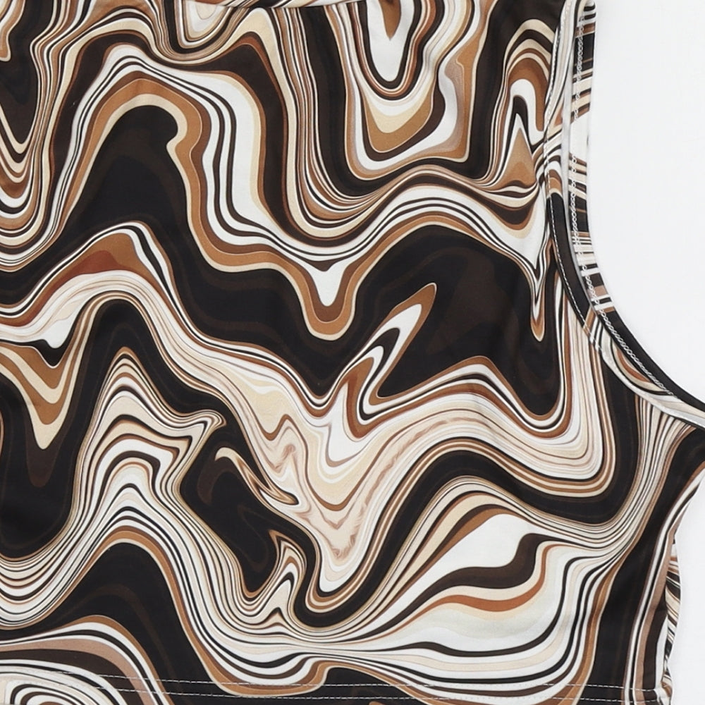 SheIn Womens Brown Geometric Polyester Basic T-Shirt Size L High Neck