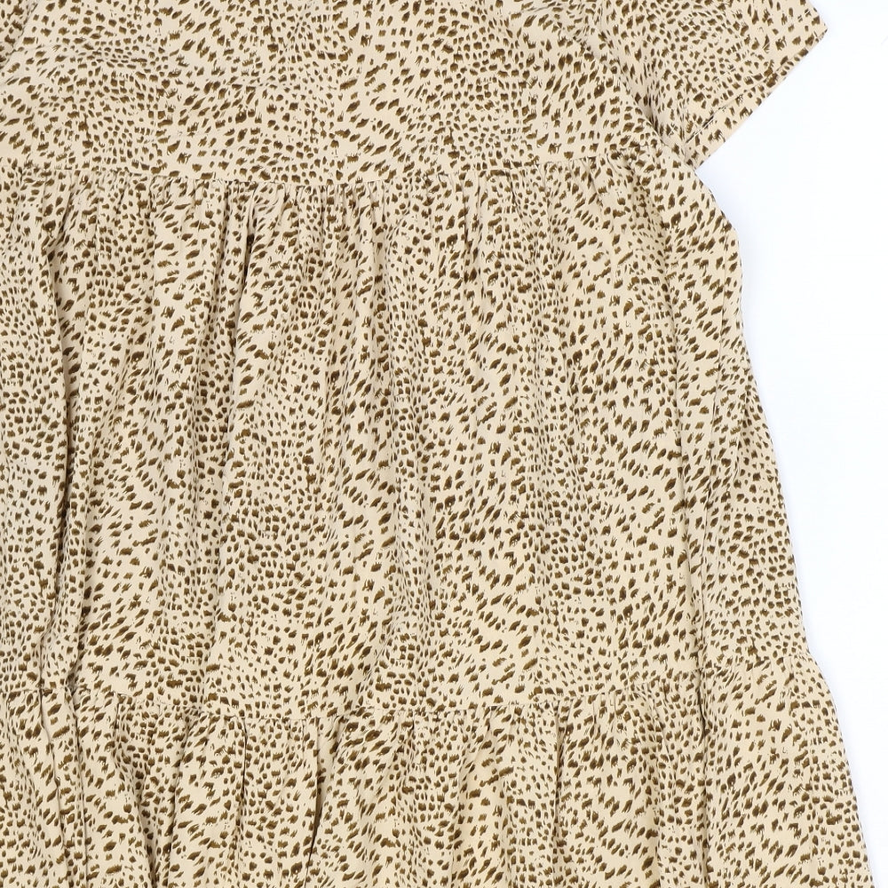 SheIn Womens Brown Geometric Polyester Shift Size M V-Neck Pullover - Drop Hem