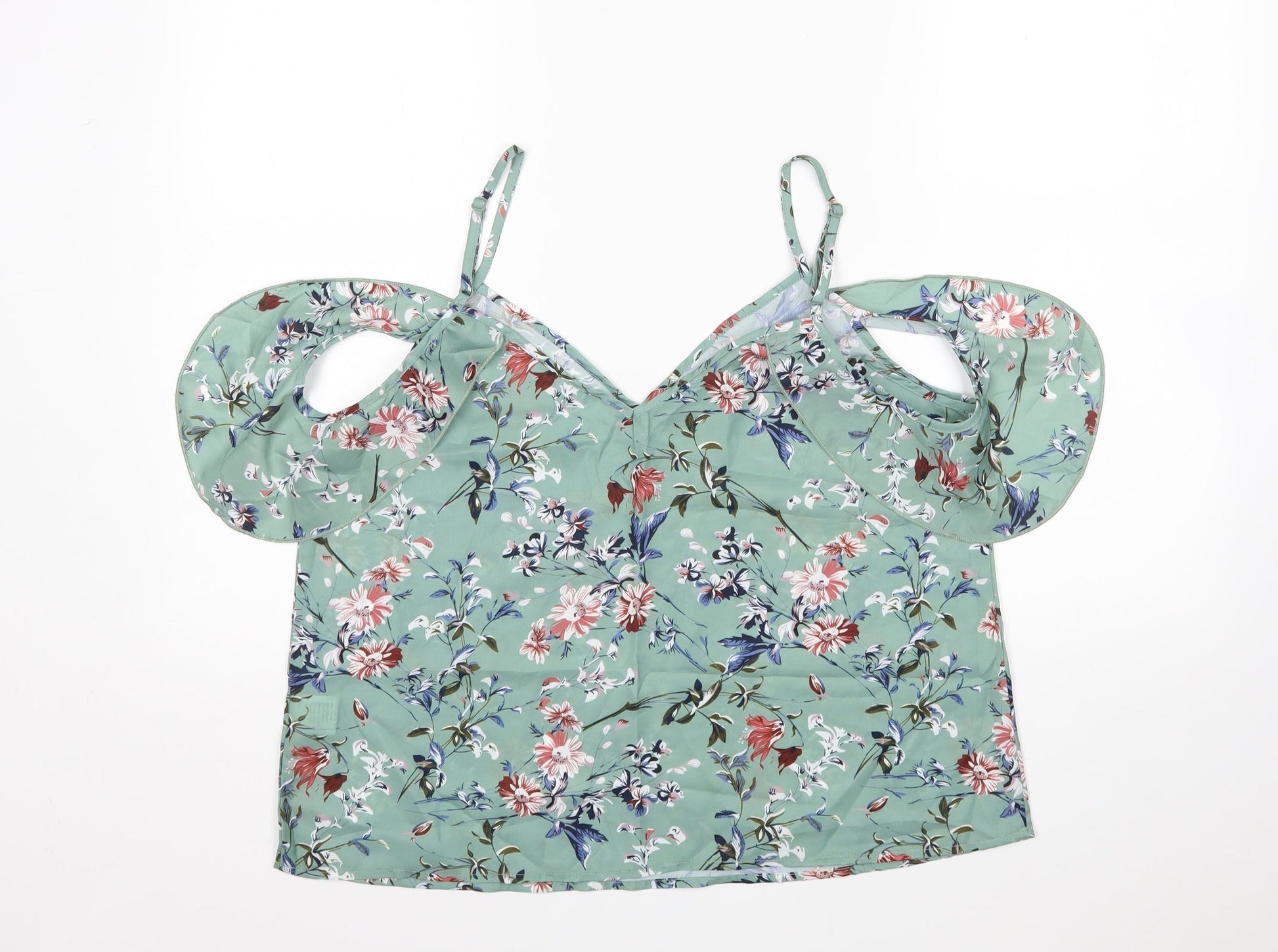 Shein Womens Green Floral Polyester Basic Blouse Size L V-Neck