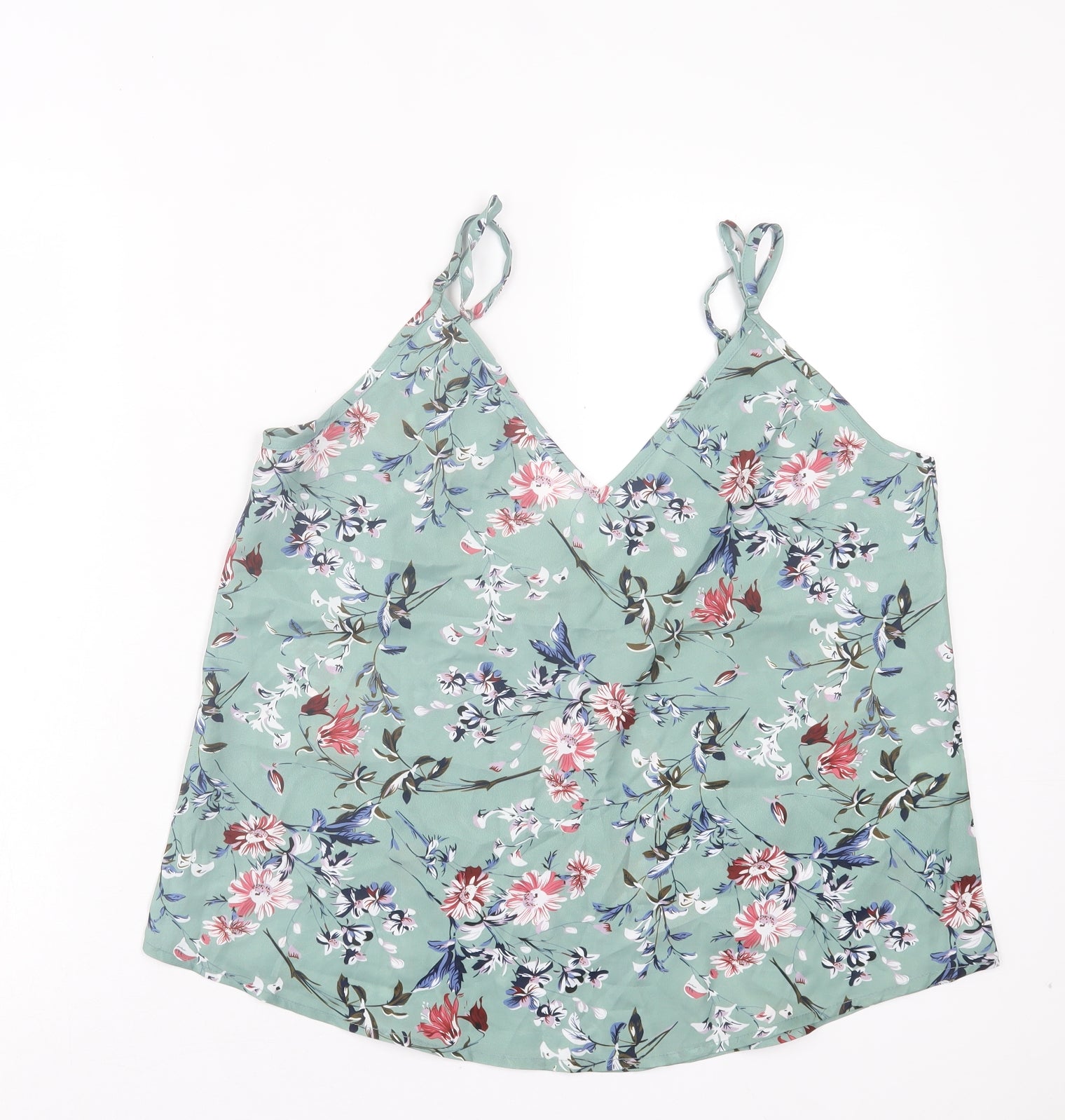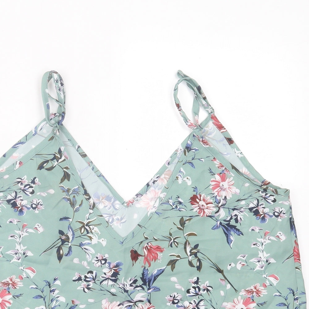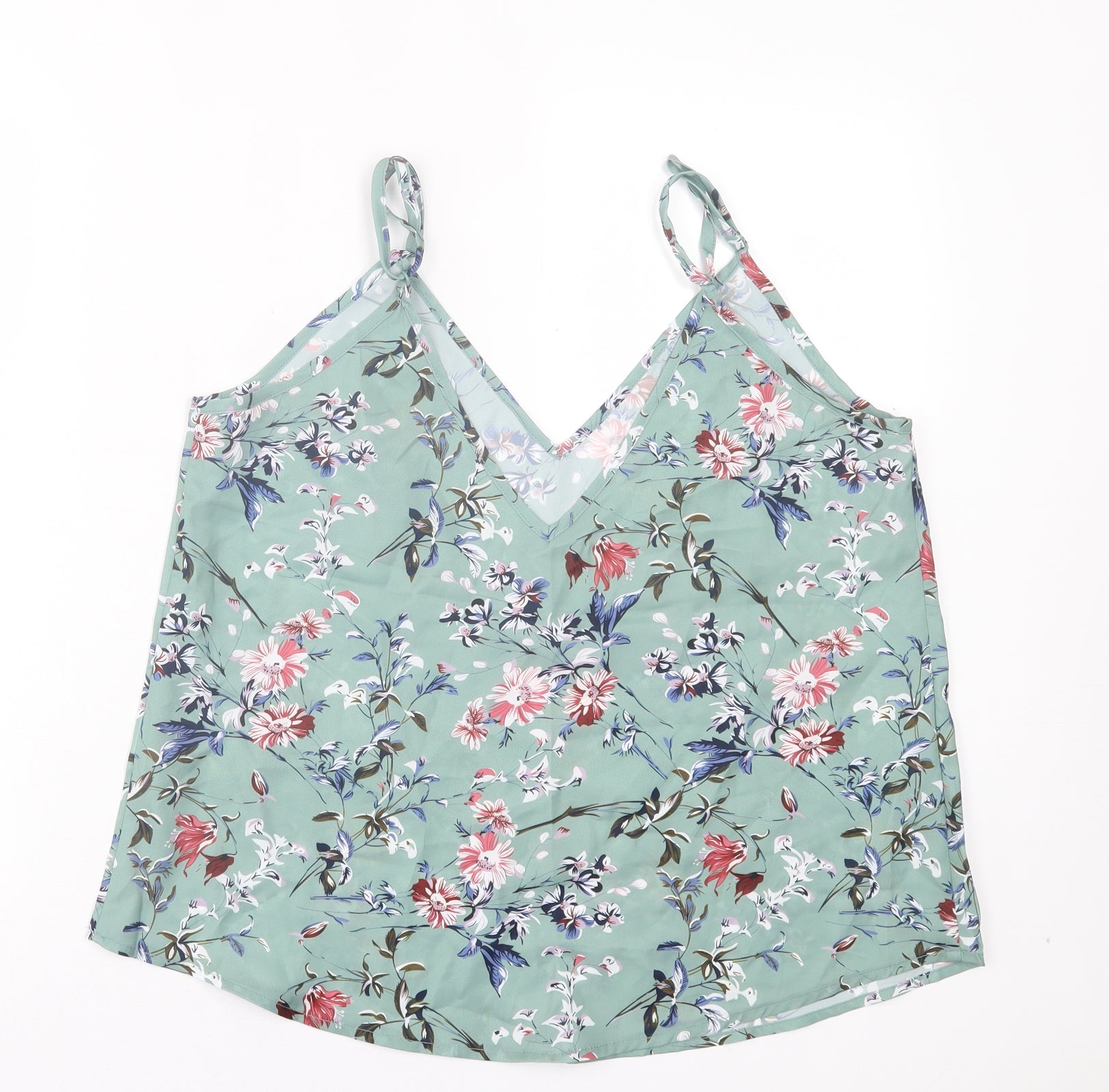 SheIn Womens Green Floral Polyester Basic Tank Size L V-Neck
