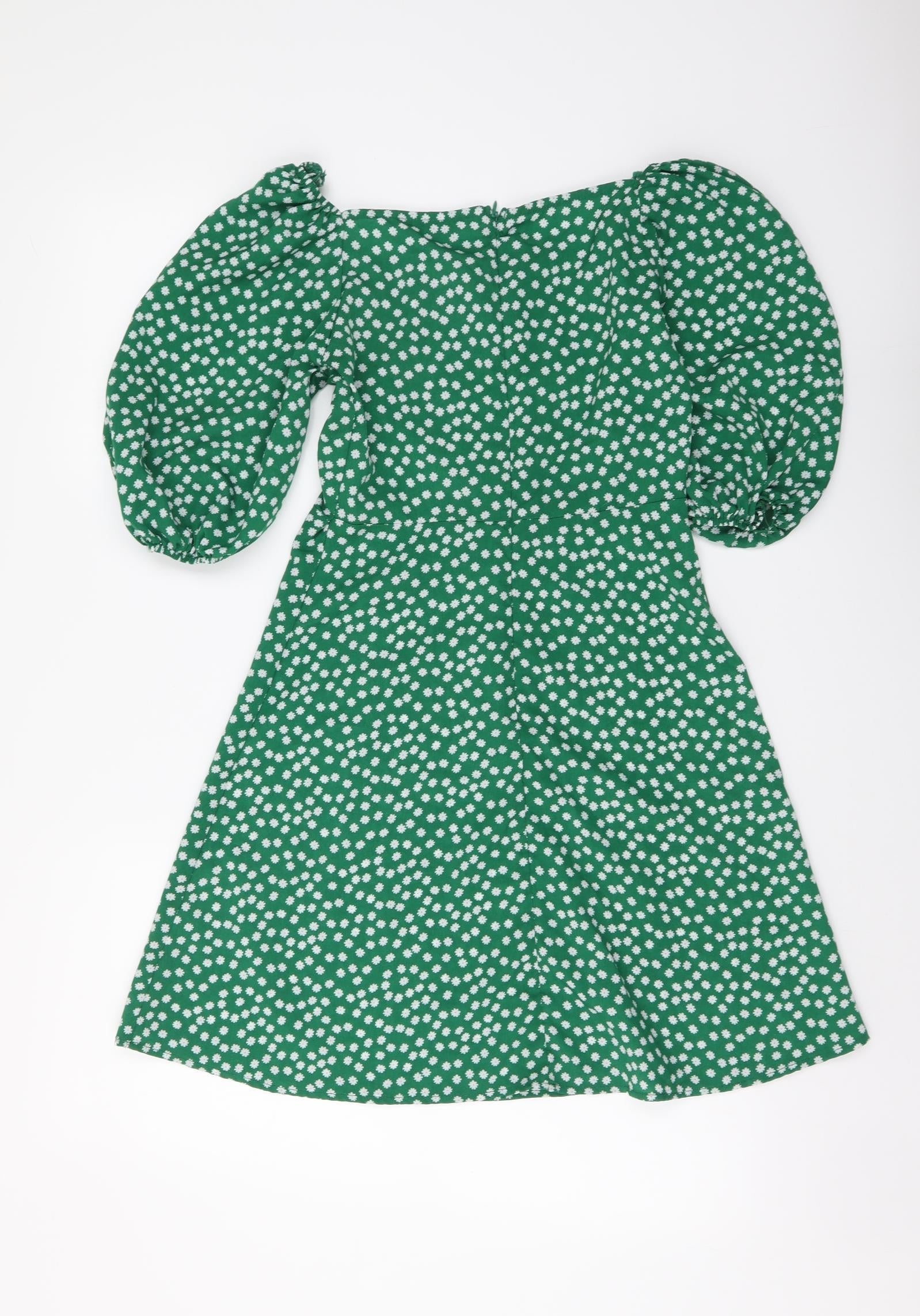 SheIn Womens Green Floral Polyester Skater Dress Size XS Off the Shoulder Zip
