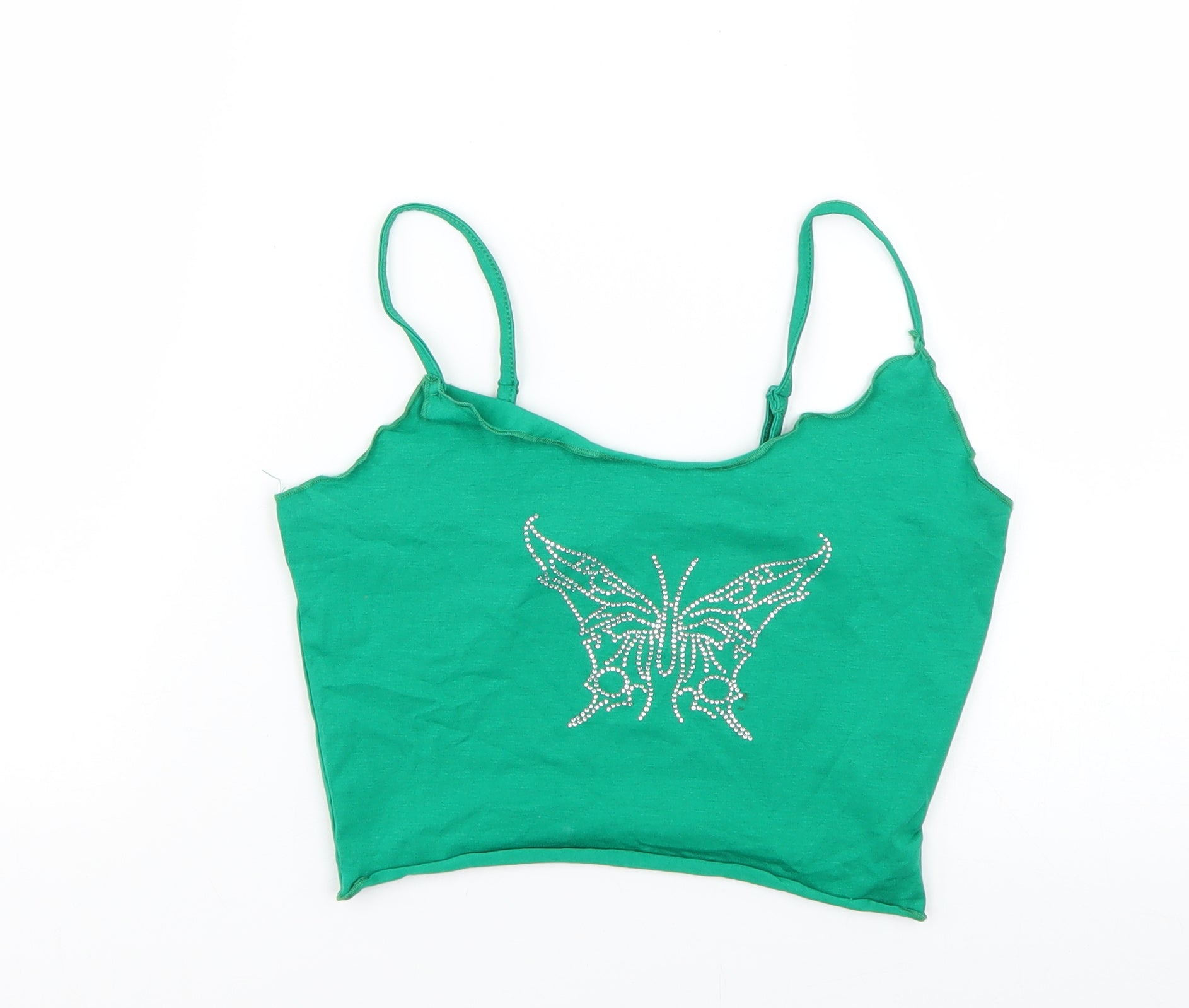 SheIn Womens Green Geometric Basic T-Shirt Size S