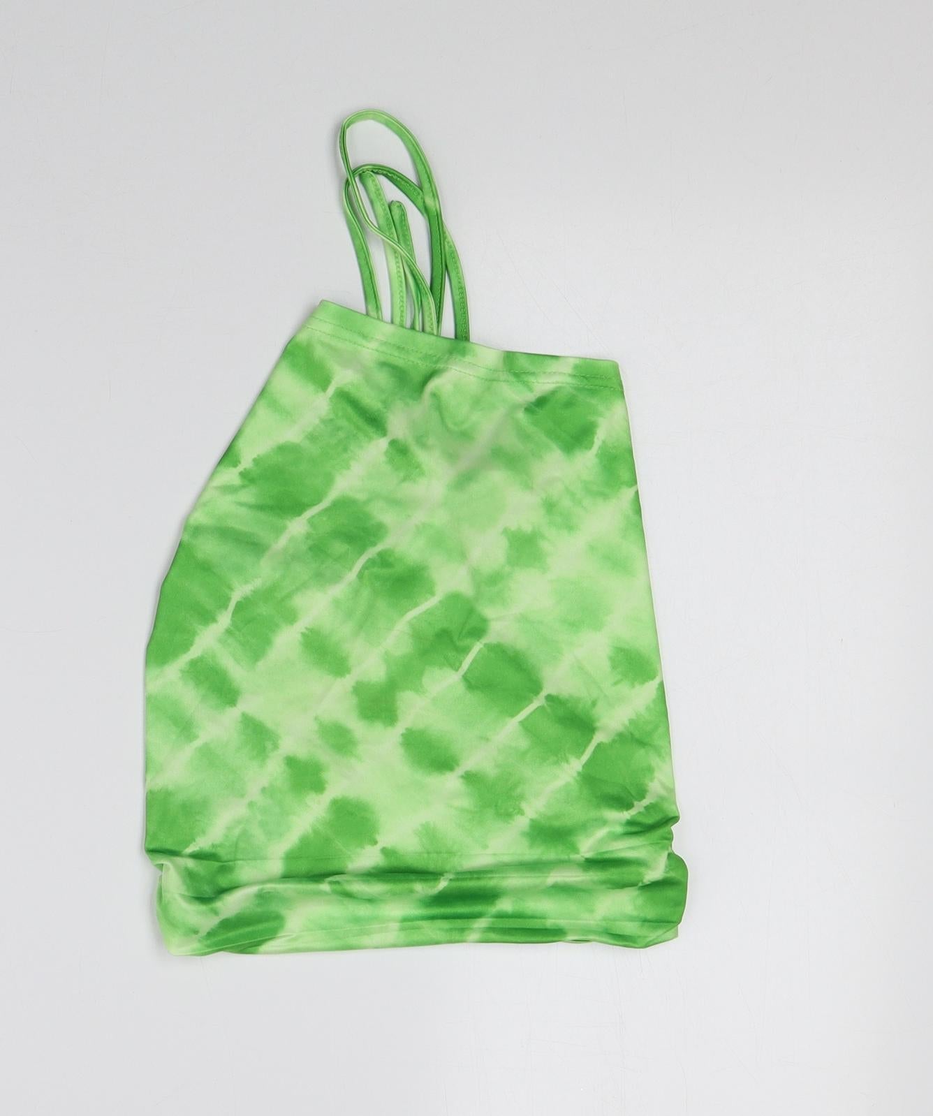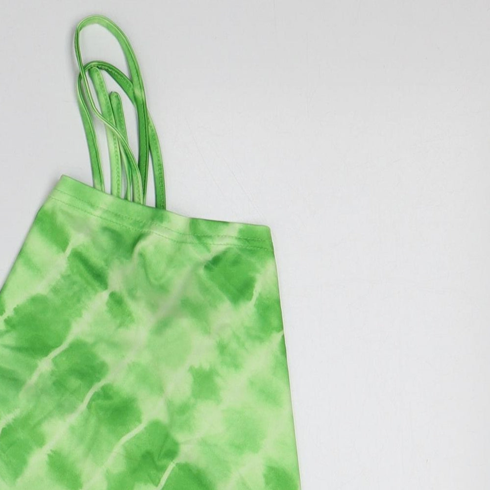 SheIn Womens Green Geometric Polyester Cropped T-Shirt Size L Cowl Neck - Tie Dye