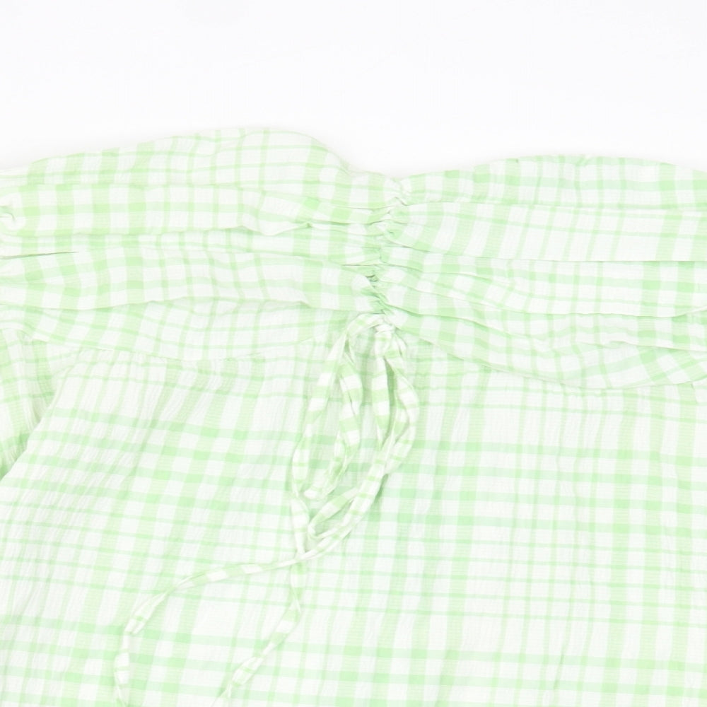 SheIn Womens Green Plaid Polyester Basic T-Shirt Size L Off the Shoulder