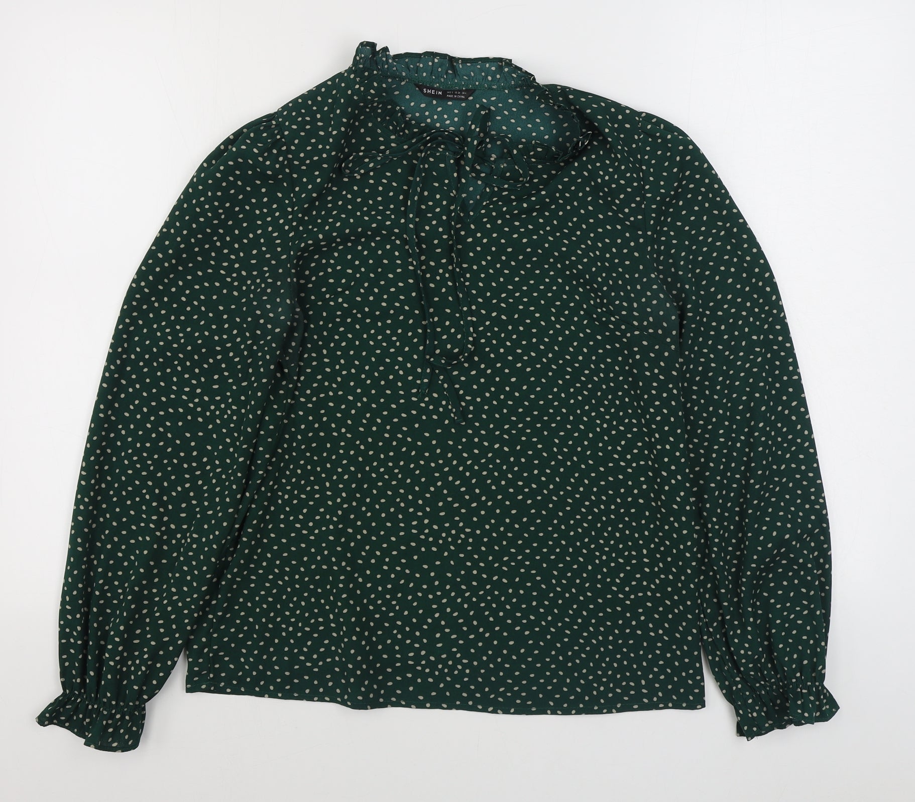 SheIn Womens Green Polka Dot Polyester Basic Blouse Size S Round Neck