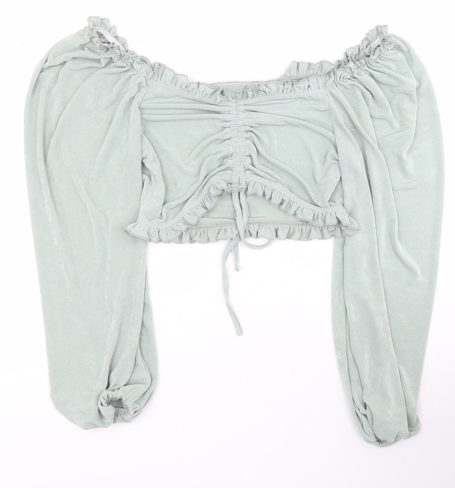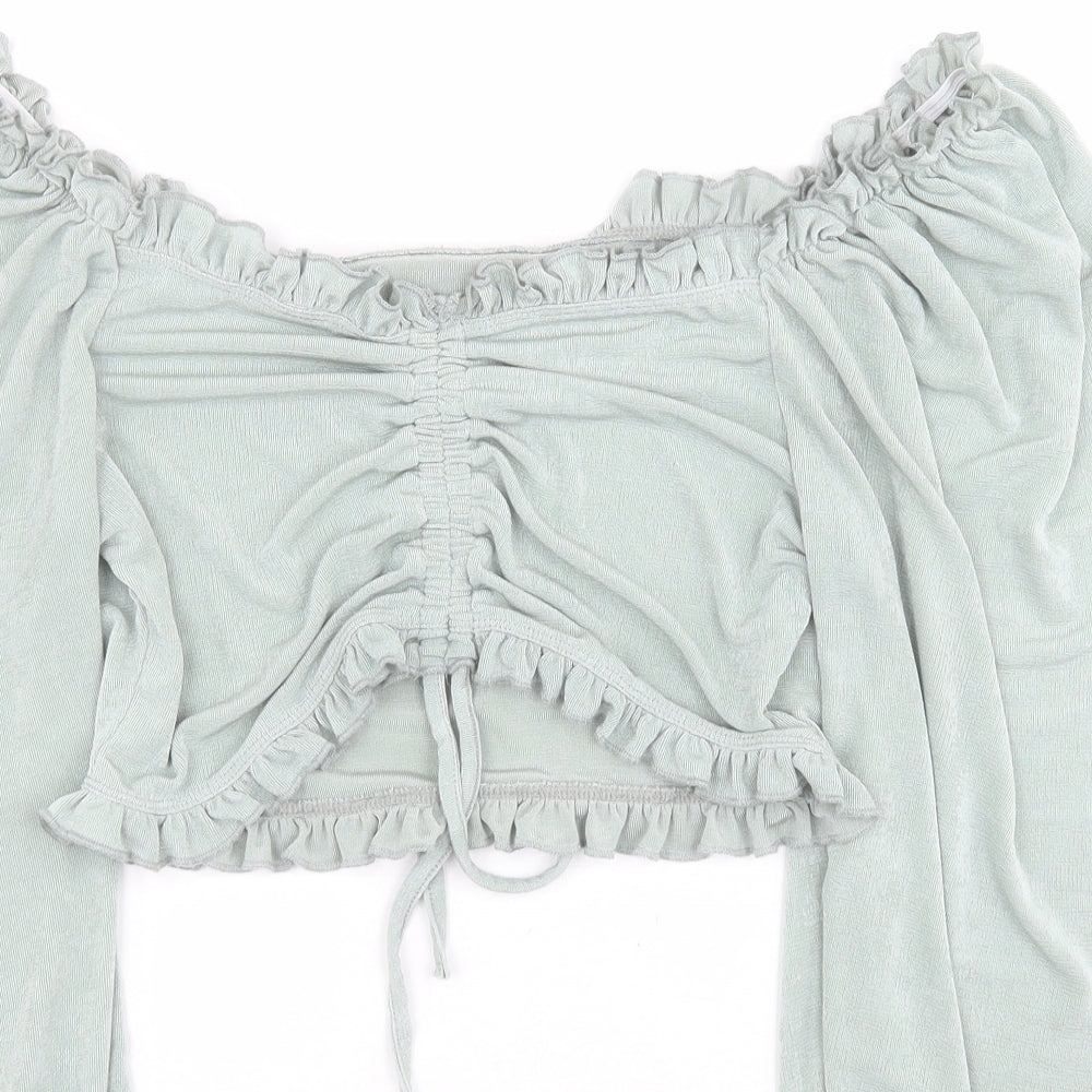 SheIn Womens Green Polyester Basic Blouse Size L Off the Shoulder