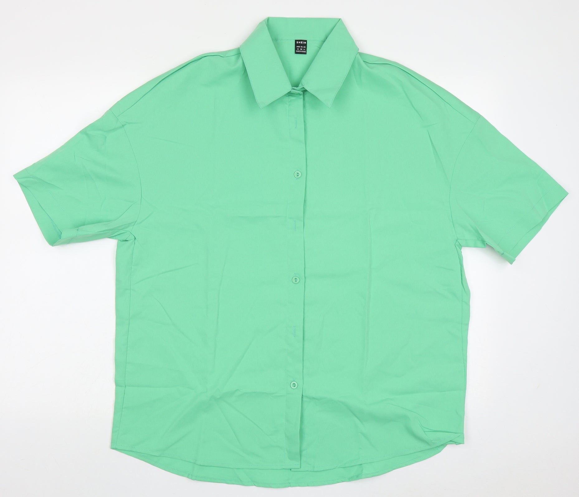 SheIn Womens Green Polyester Basic Button-Up Size M Collared