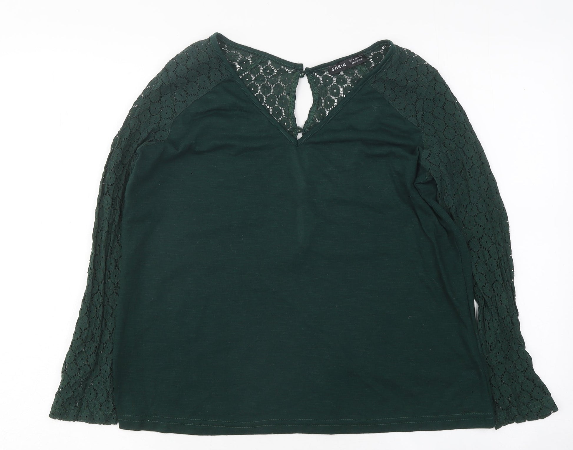 SheIn Womens Green Polyester Basic T-Shirt Size M Round Neck