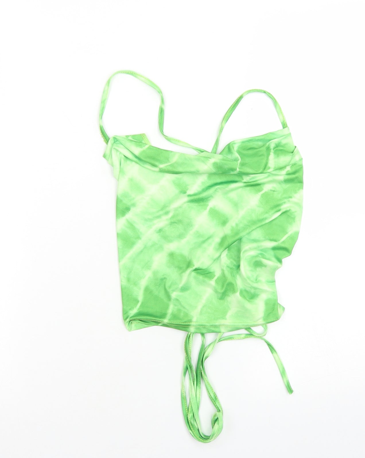 SheIn Womens Green Polyester Cropped Tank Size S Cowl Neck - Corset style back