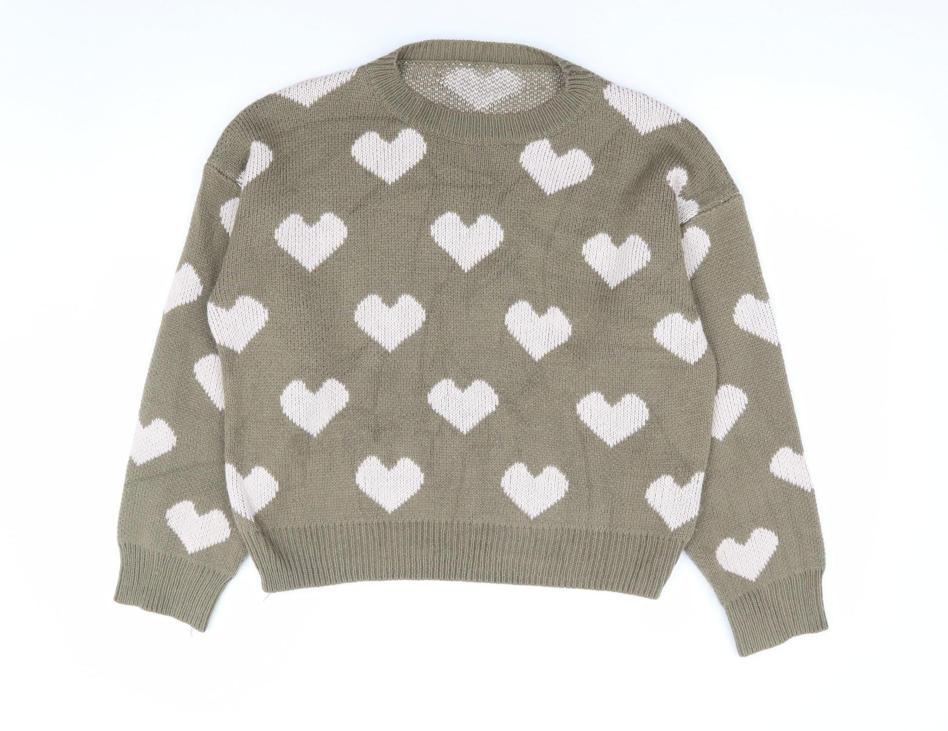 SheIn Womens Green Round Neck Geometric Acrylic Pullover Jumper Size S - Heart