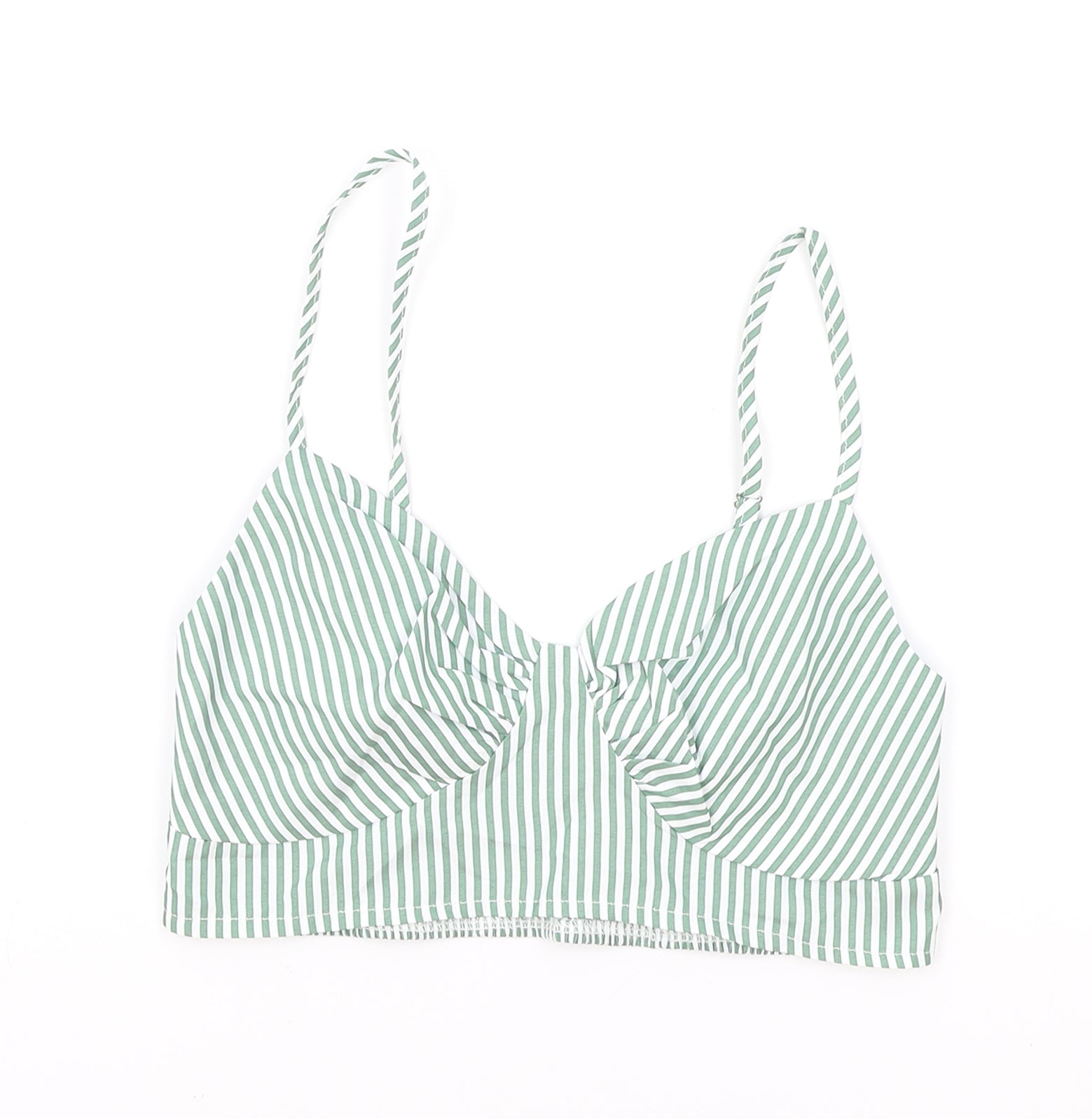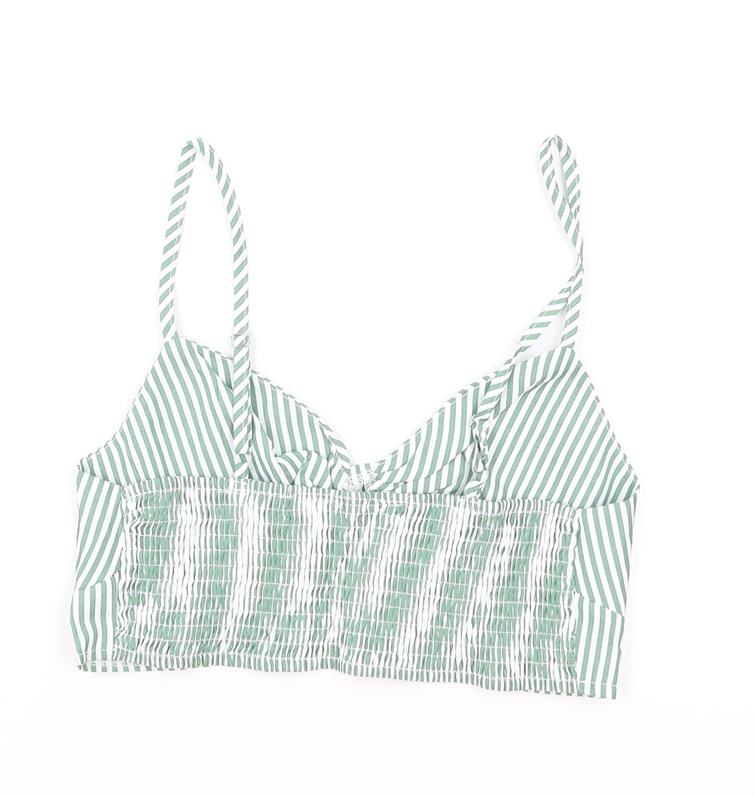 SheIn Womens Green Striped Polyester Cropped Tank Size M V-Neck - Shirred Back