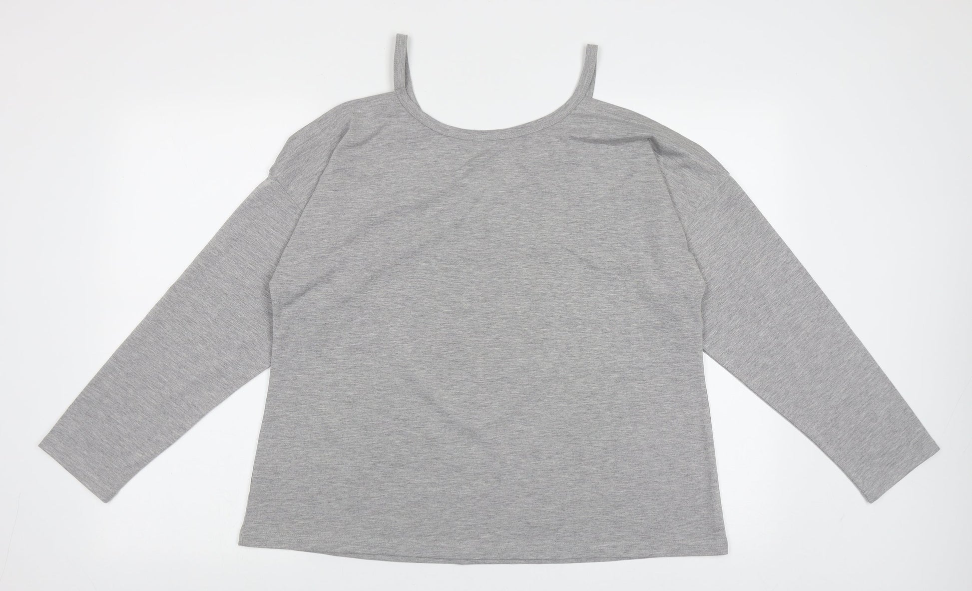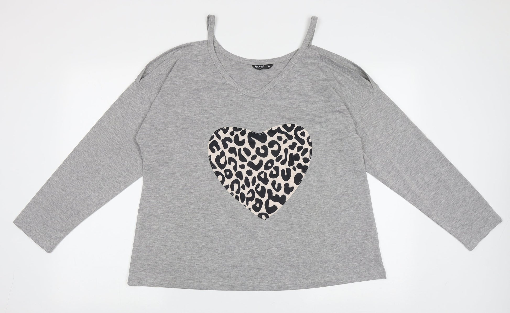 SheIn Womens Grey Animal Print Polyester Jersey T-Shirt Size XL V-Neck - Cold Shoulder