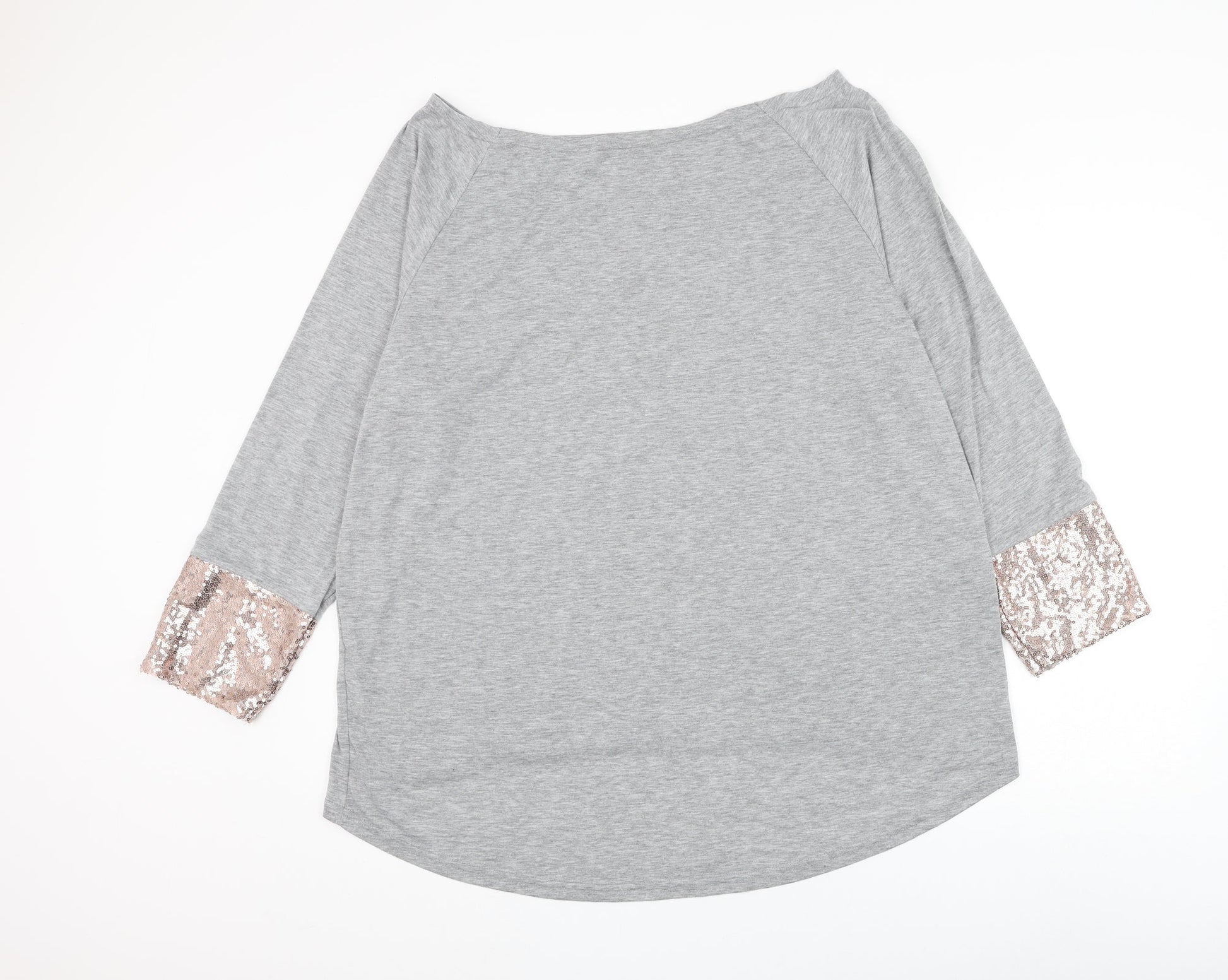 SheIn Womens Grey Boat Neck Polyester Pullover Jumper Size 2XL