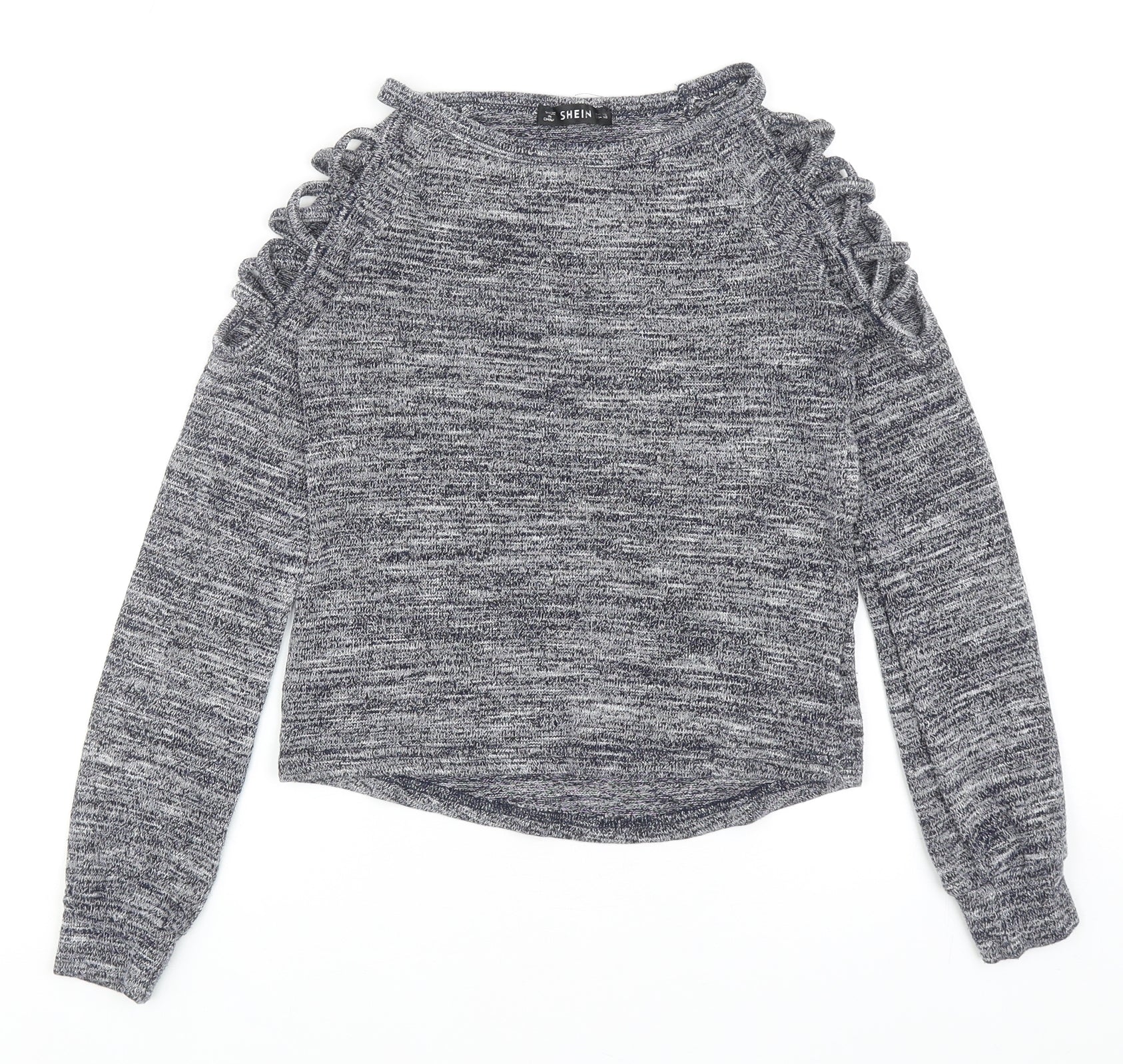 SheIn Womens Grey Boat Neck Polyester Pullover Jumper Size XS - Shoulder Detail