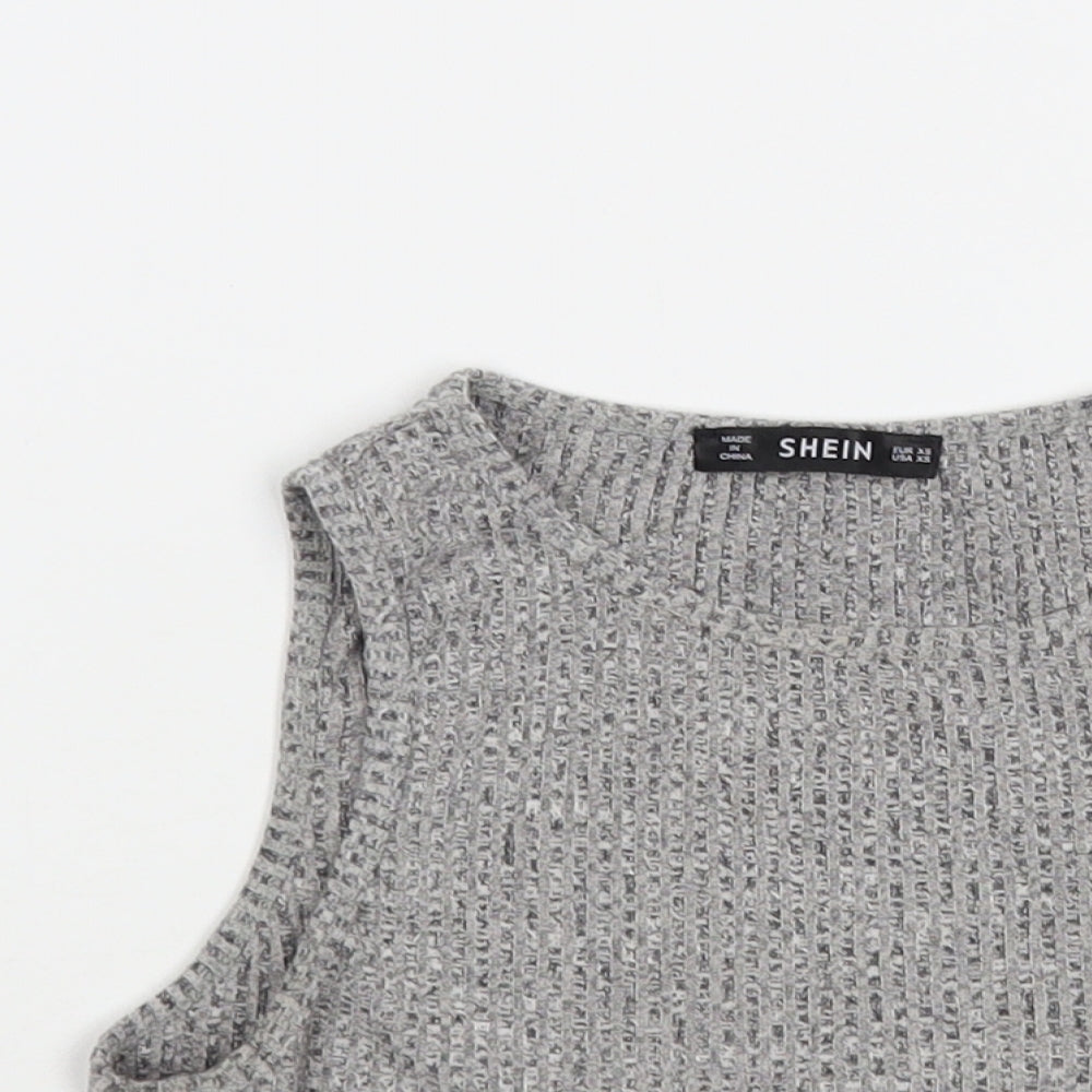 SheIn Womens Grey Cotton Cropped Blouse Size XS Boat Neck