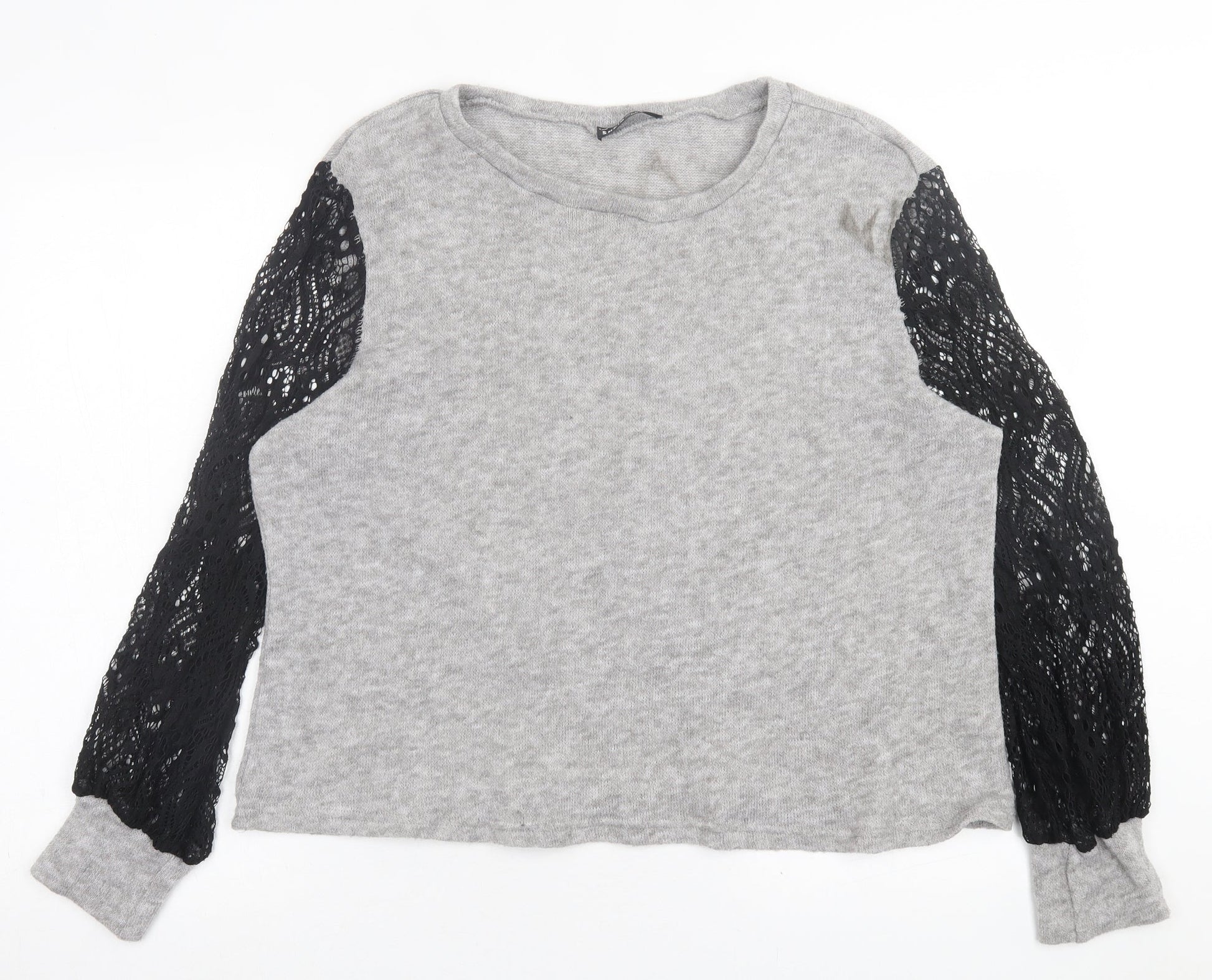 SheIn Womens Grey Crew Neck Polyester Pullover Jumper Size L